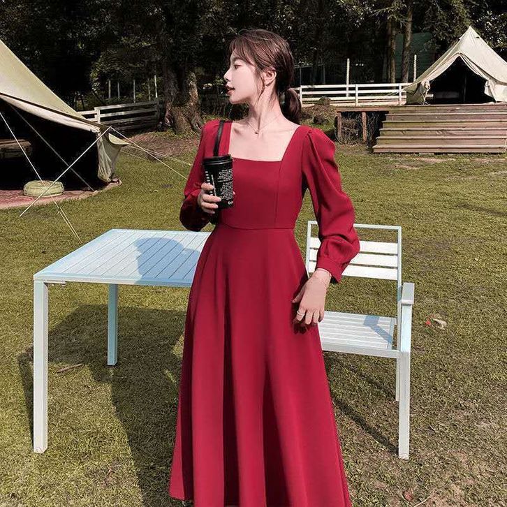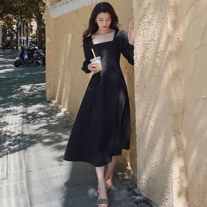 Dres Korea ZLORE - #DR05 U Neck Dress Lengan Panjang // Korean Party Dress Square Neck - 100 IMPORT S-2XL