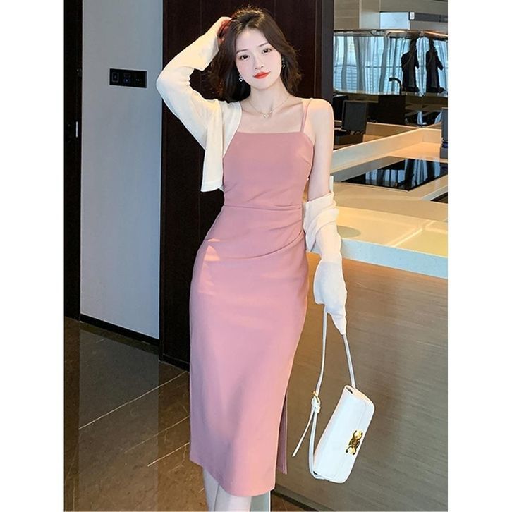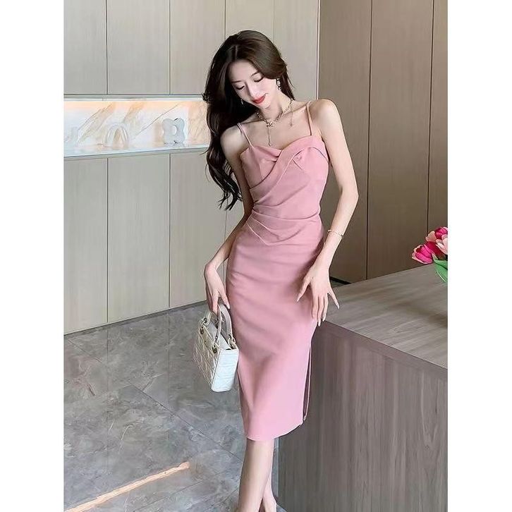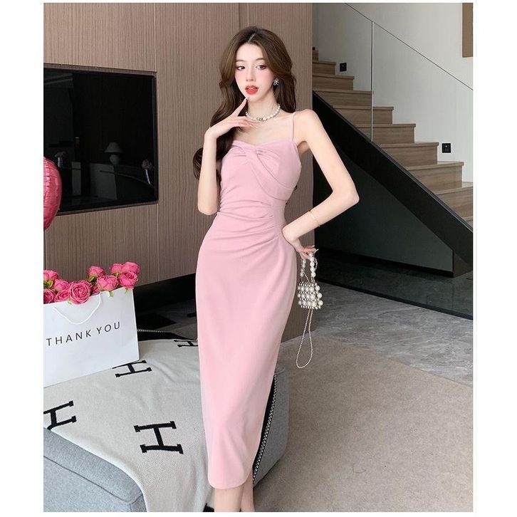 Dres Korea Meirong long dress Pink korean style dress sexy ke pantai wanita party dress import