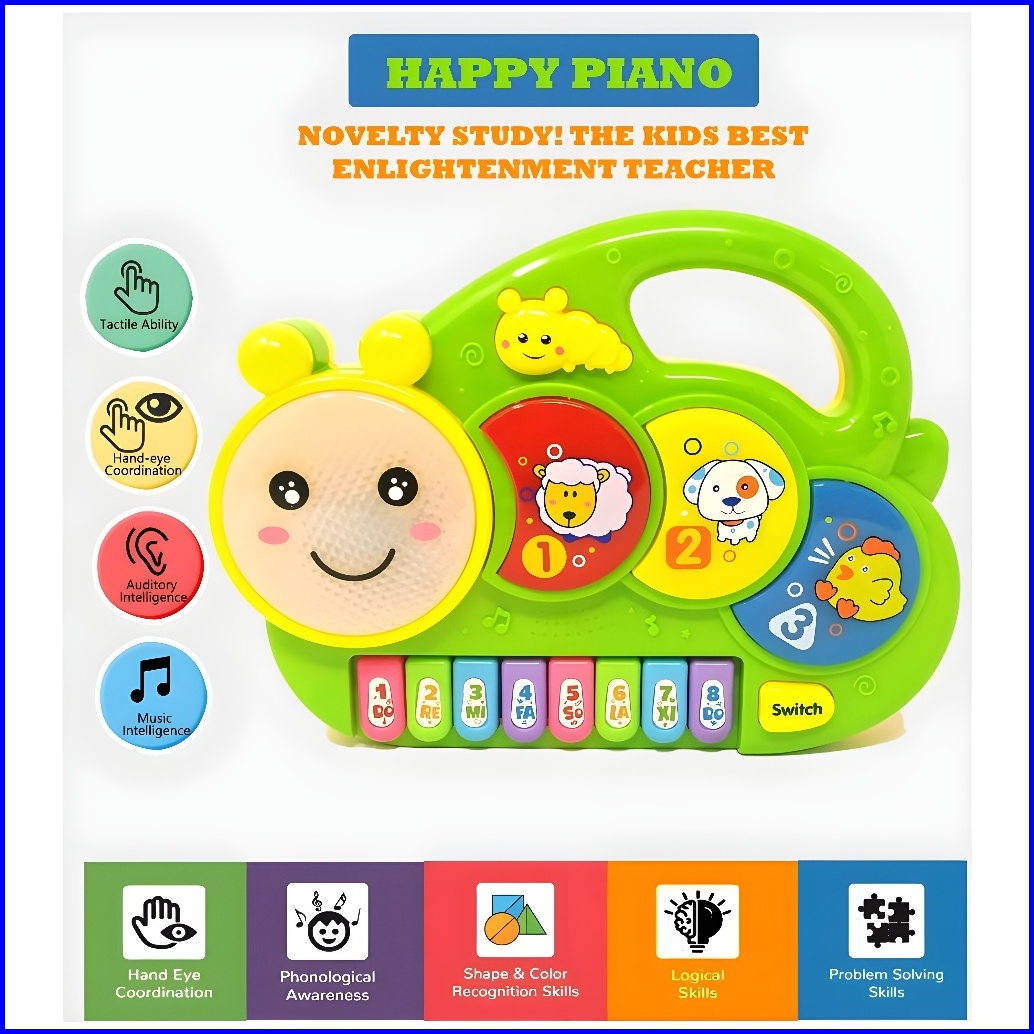 Toy Studio Mainan Musik Bayi Cartoon Piano Bayi Snail Caterpillar Elf Keluar Musik Dan Lampu