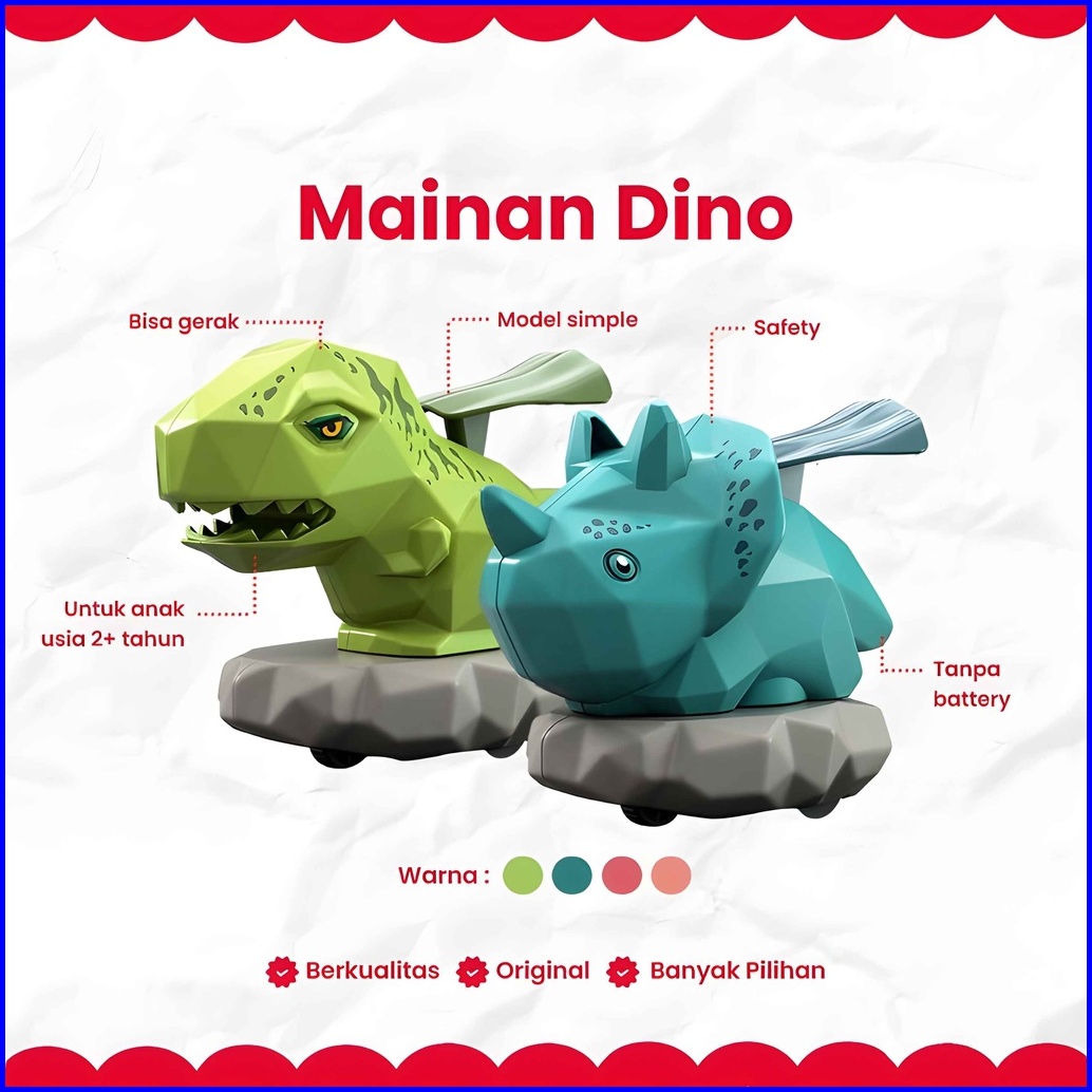 Mainan Anak Berjalan Push Go Function Cute Dino Car Mainan Tarik Anak Bayi