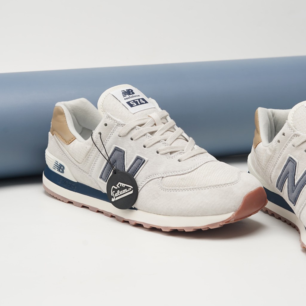 Sepatu New Balance Original Pria 574 Beige Navy Light Cliff Indigo New Balance Sepatu Pria Sneaker