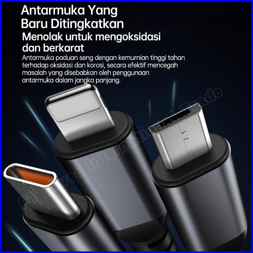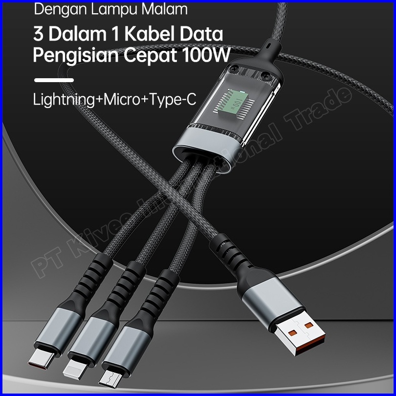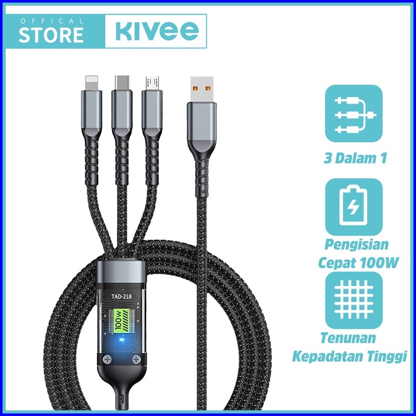 Kivee Kabel Data Iphone 3 In 1 Super Fast Charging 100w Usb To Lightning Micro Type C 1.2m
