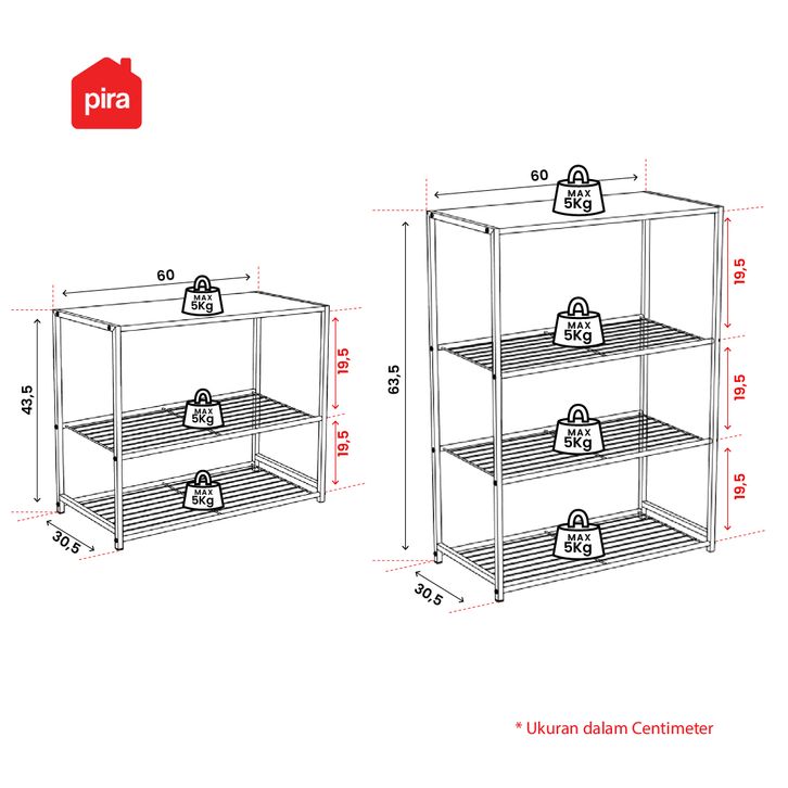 PIRA METROPOLIS - KAYO MSU Rak Susun Besi / Rak Serbaguna / Rak Sepatu