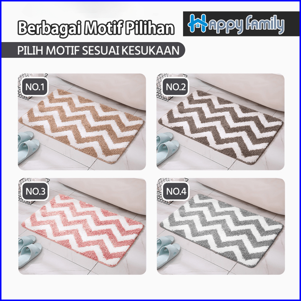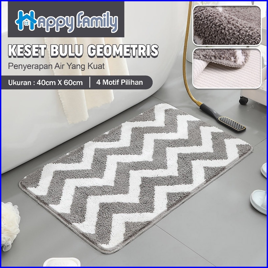 Happy Family Keset Bulu Kamar Mandi Motif Geometris Nyerap Air Antislip Bahan Premium 40x60cm
