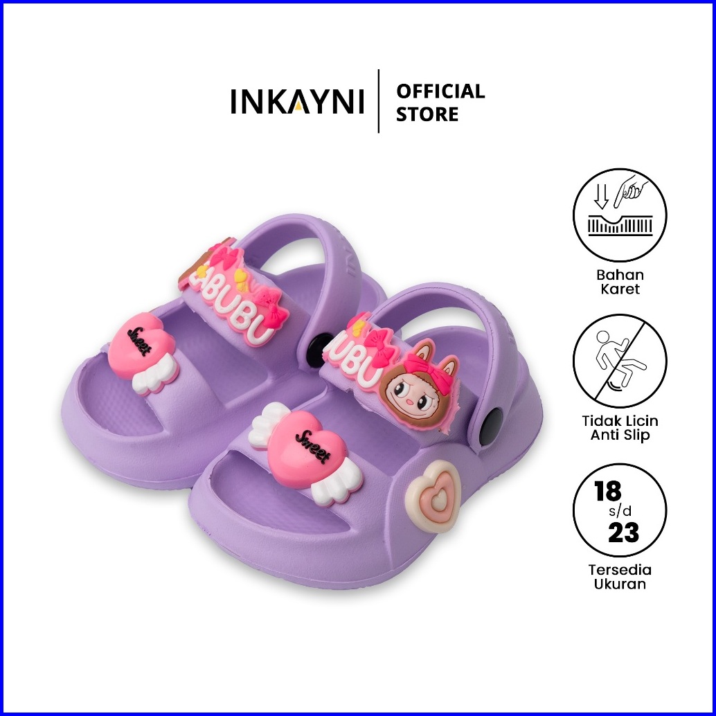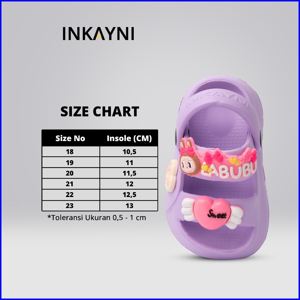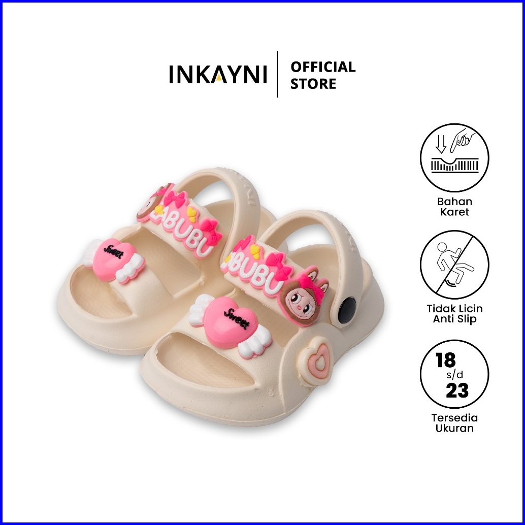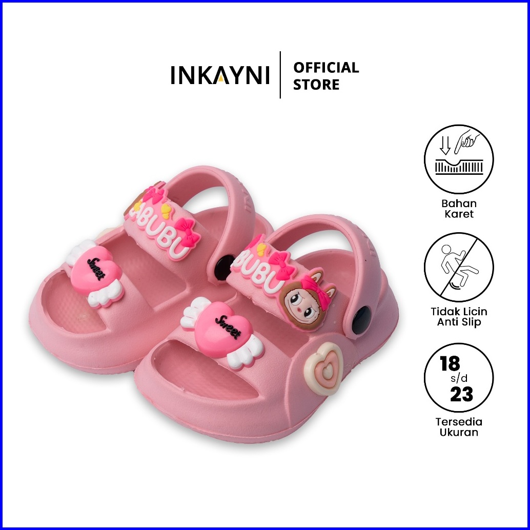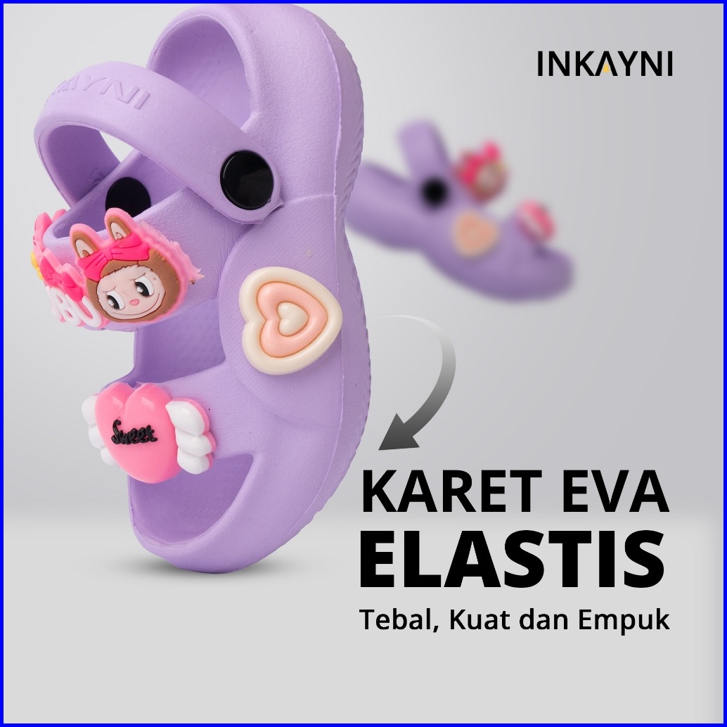 Inkayni Sendal Selop Anak Perempuan Size 18-29 Anti Slip Motif Labubu Baim Kodok