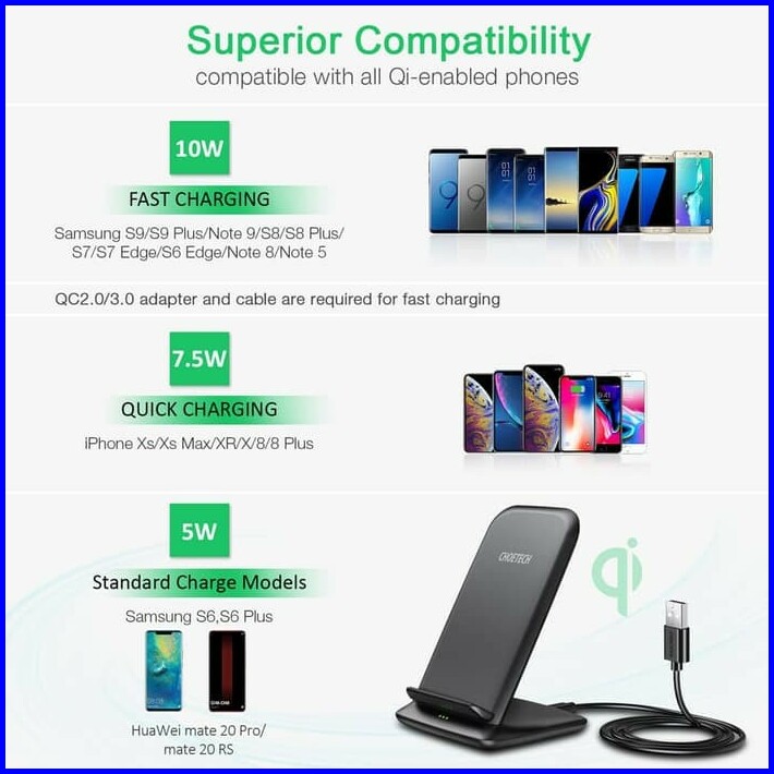 Choetech T555 Wireless Charger 10 W Fast Charging Quick Charge Blue