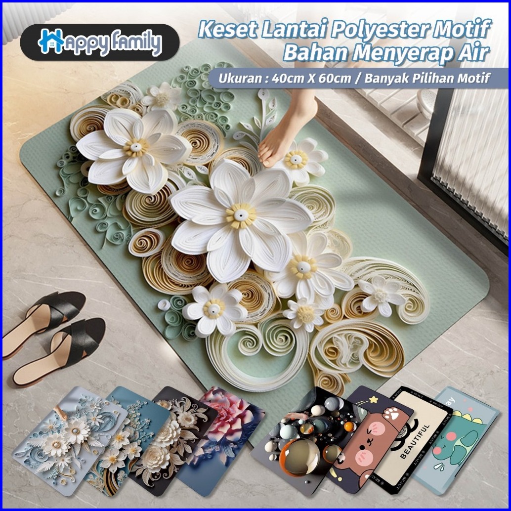 Hf Keset Lantai Motif 3d Modern Polyester Anti Slip Cepat Serap Air 40x60cm Keset Kamar Mandi