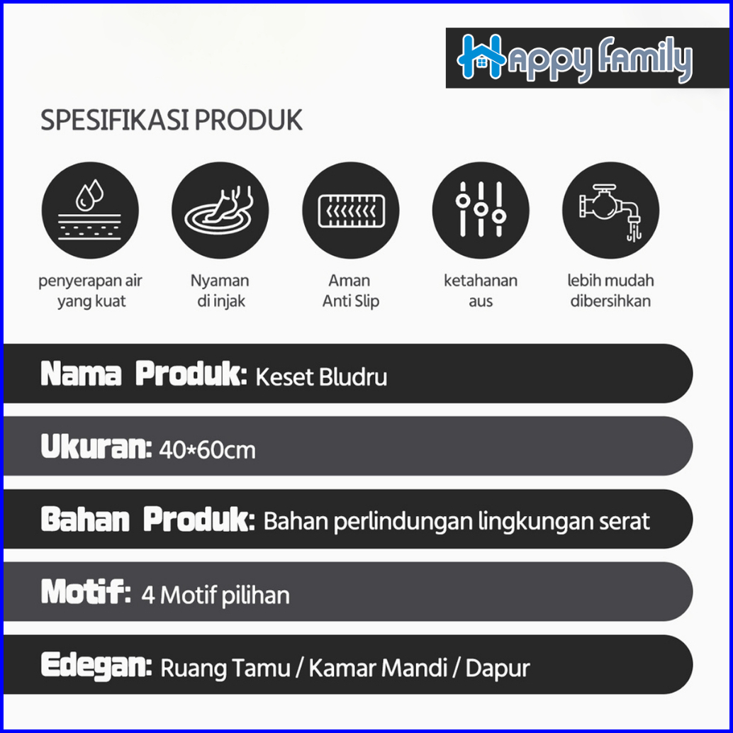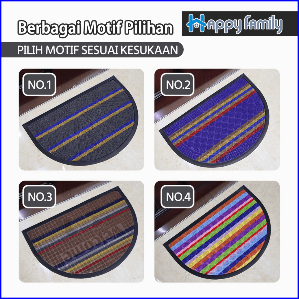 Hf Keset Lantai Bulu Bludru Setengah Lingkaran Keset Kaki Bahan Karet Bulu Anti Slip 40 X 60cm