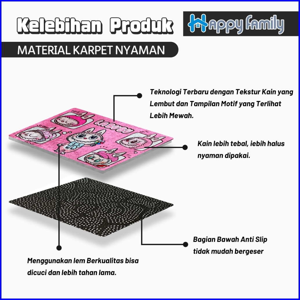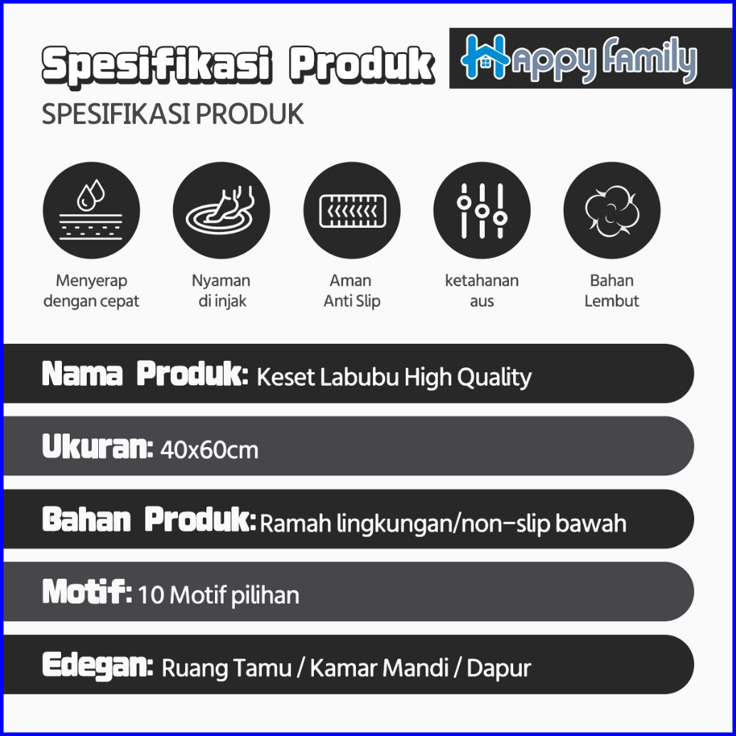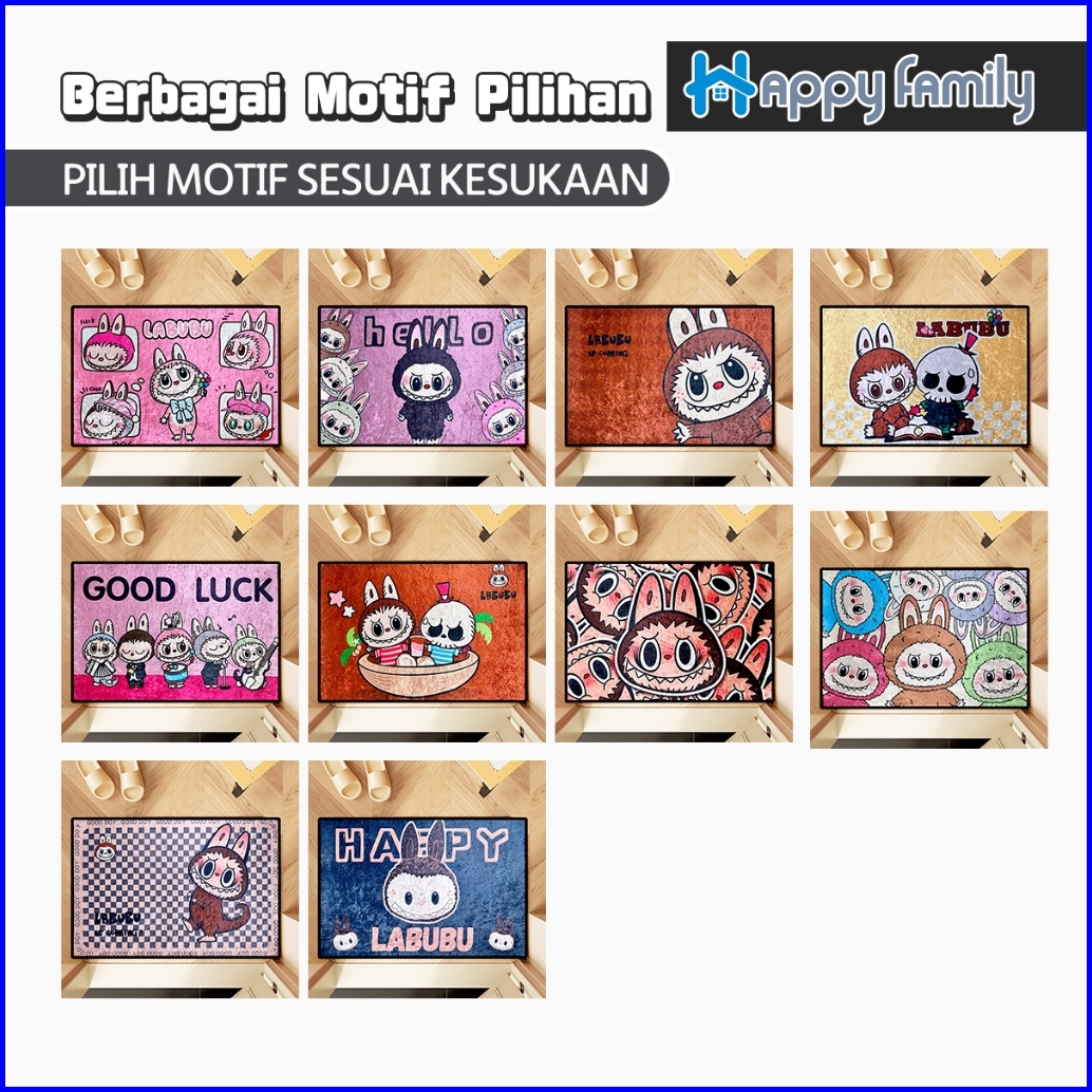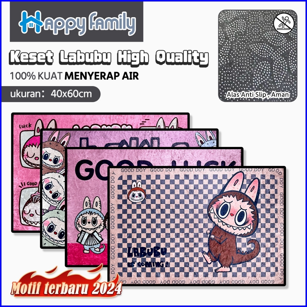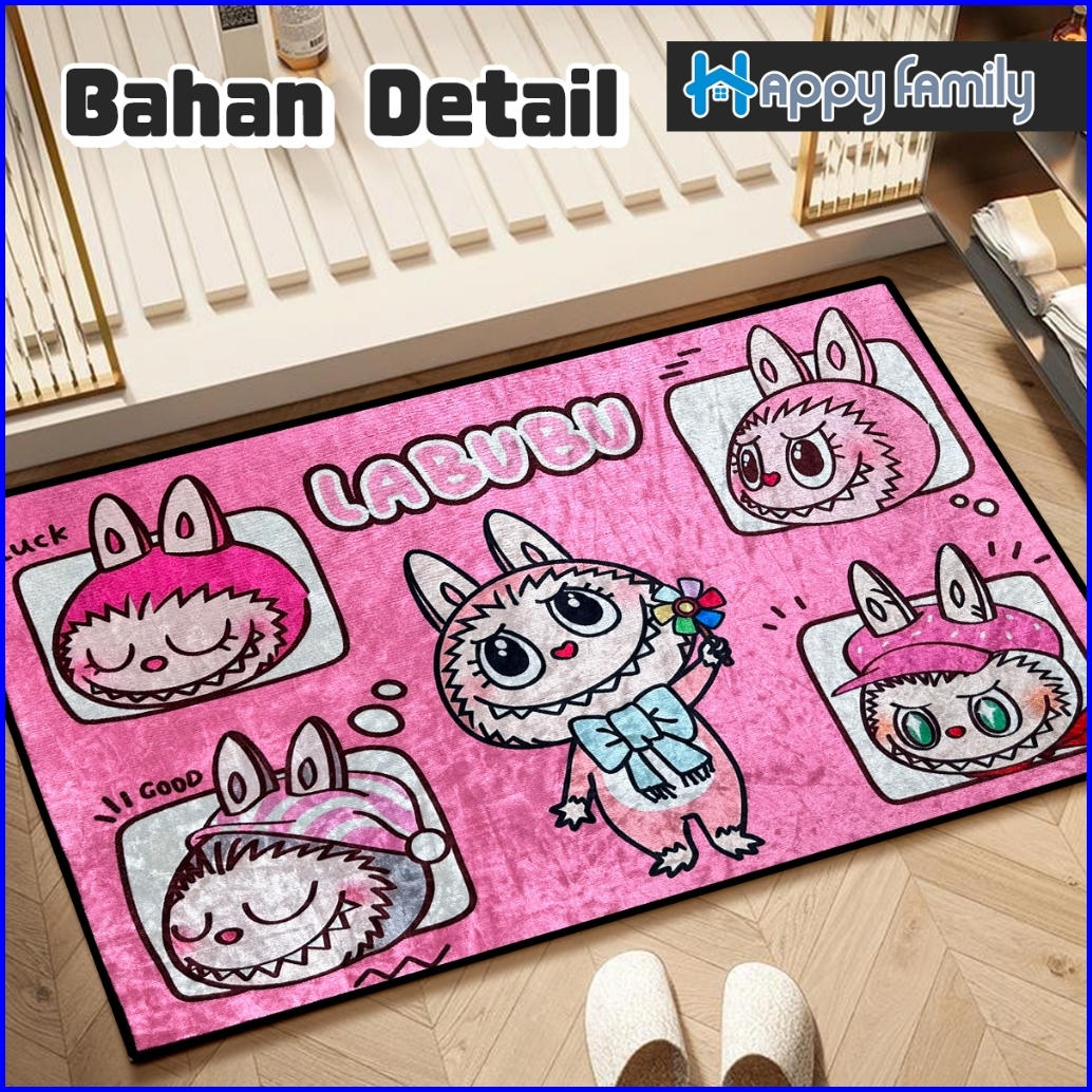 Hf Beli Lokal Keset Lantai Nyerap Air Motif Labubu Modern Anti Slip Keset Kaki Kamar Tidur 40x60cm