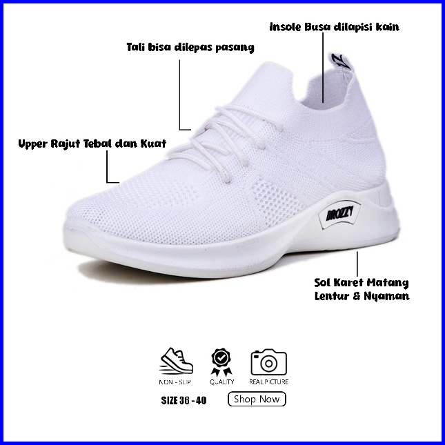 Brozzy Sepatu Wanita Rajut D14 D11 D12 Sneakers Senam Olahraga Lari Kasual Import Premium