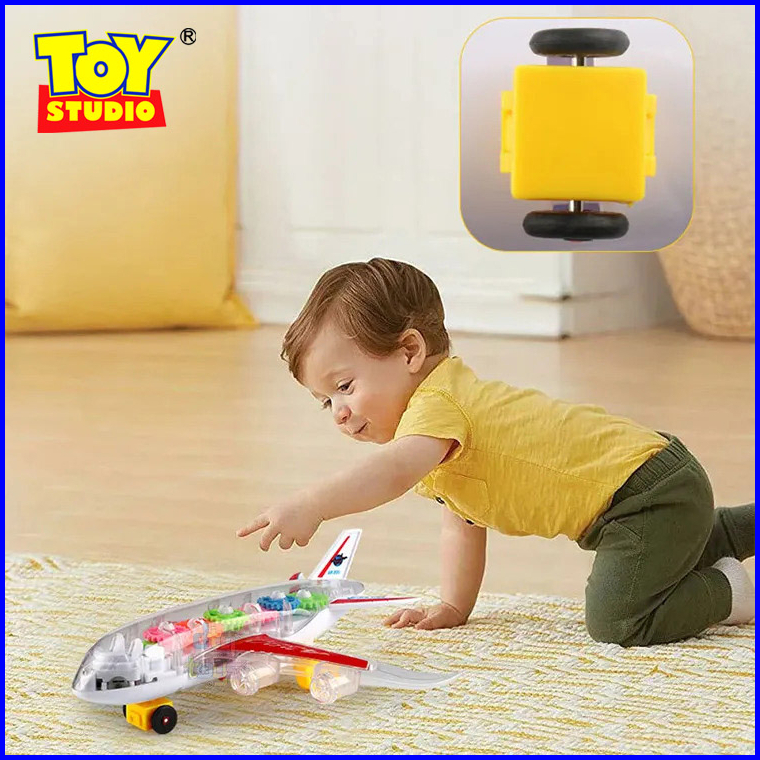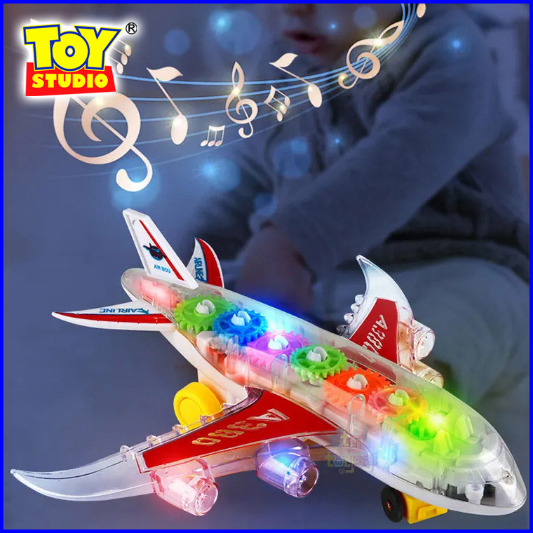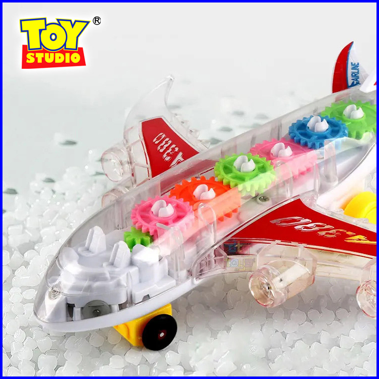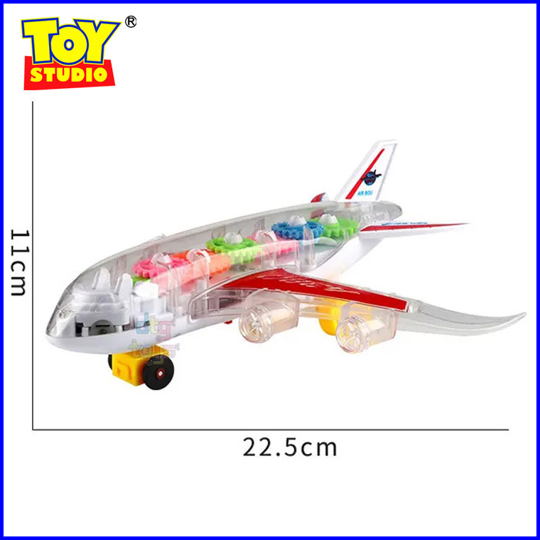 Mainan Anak Batere Pesawat A380 Garuda Transparent Gear Plane With Action Music Light