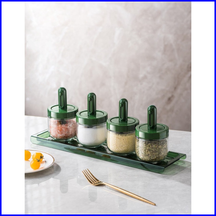 Spm Toples Bumbu Kaca Hijau Seasoning Box Sauce Spice Jar Kotak Bumbu Dapur Saos
