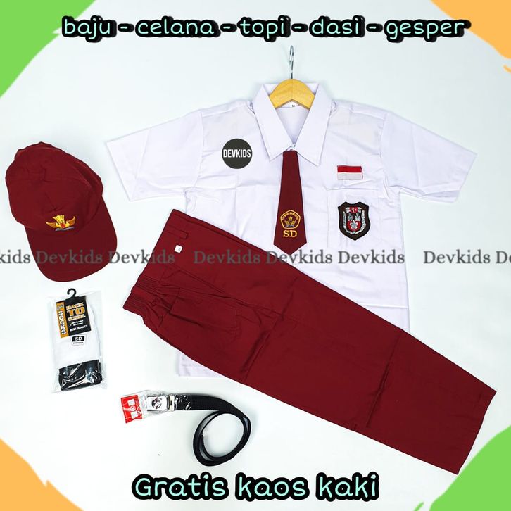 Setelan Super Lengkap Seragam Sekolah SD LAKI BAJU PENDEK CELANA PANJANG KELAS 1-6 SD