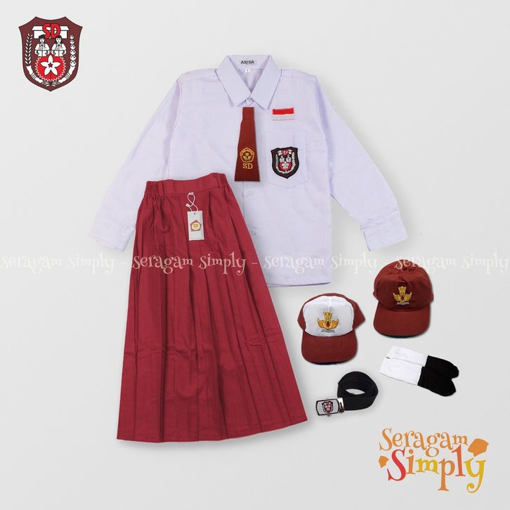 Simply SETELAN SUPER LENGKAP SERAGAM SEKOLAH SD PANJANG CEWEK - Baju Panjang Rok Panjang