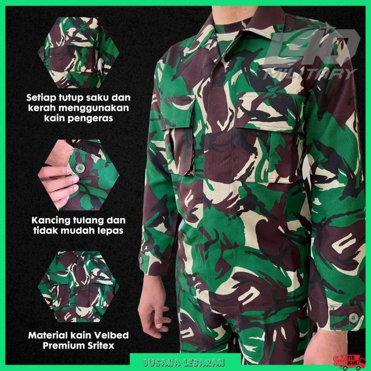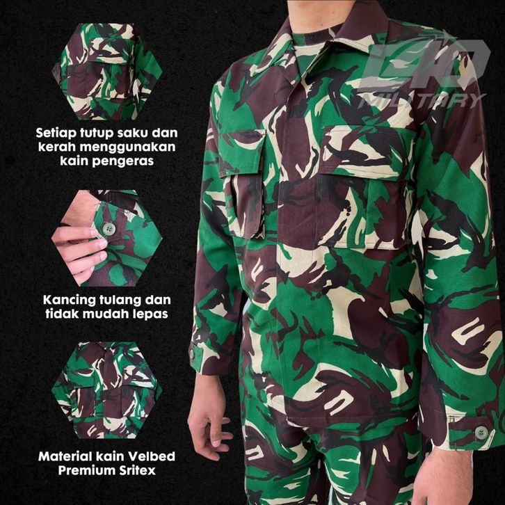 BAJU SERAGAM PDL TNI VELBED ASLI SRITEX D40 MILITARY