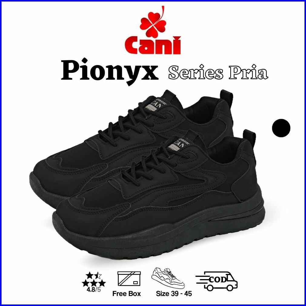 Cani Free Box Size 39 - 45 Pionyx Fullblack Sepatu Pria Sneakers Sport Fashion Kasual Import 8139