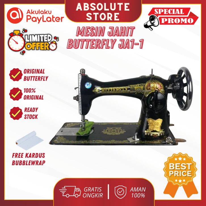 GRATIS ONGKIR - Mesin Jahit Butterfly JA1-1 Hitam Klasik (BARU) Hanya Kepala Mesin