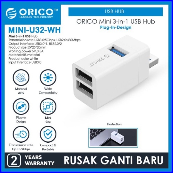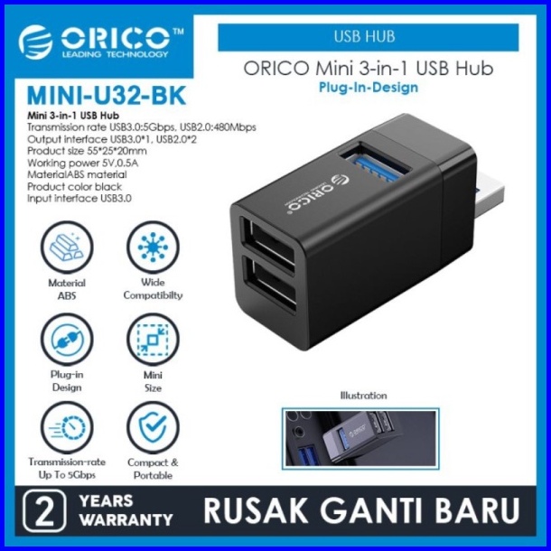 Orico Mini 3 Port Usb Hub Usb 3.0 2.0 - Mini-u32