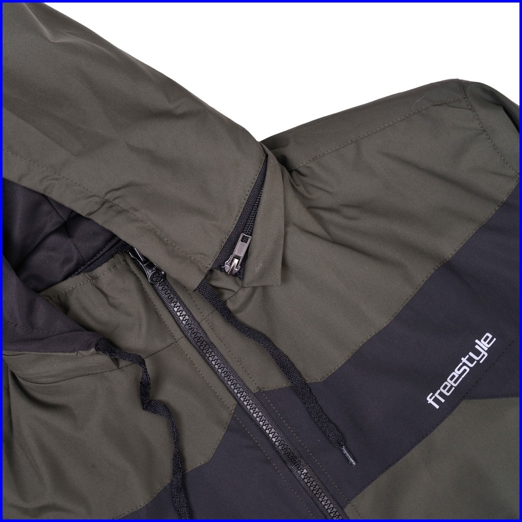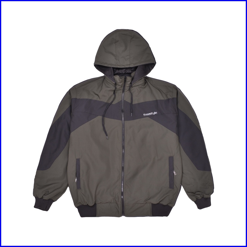 Freestyle Jaket Parasut Pria Bolak Balik Army Black Waterproof Hoodie Anti Air M-5xl