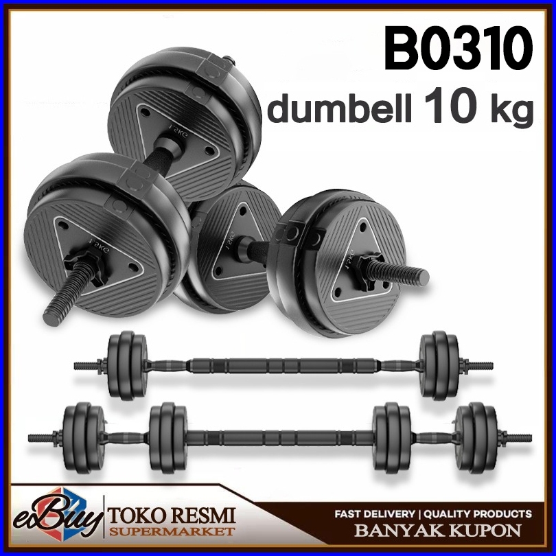 E-buyspot Dumbbell Barbell Set 10 Kg Peralatan Fitness Dumbbell Barbell 2 In 1
