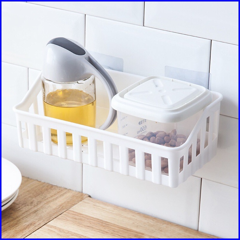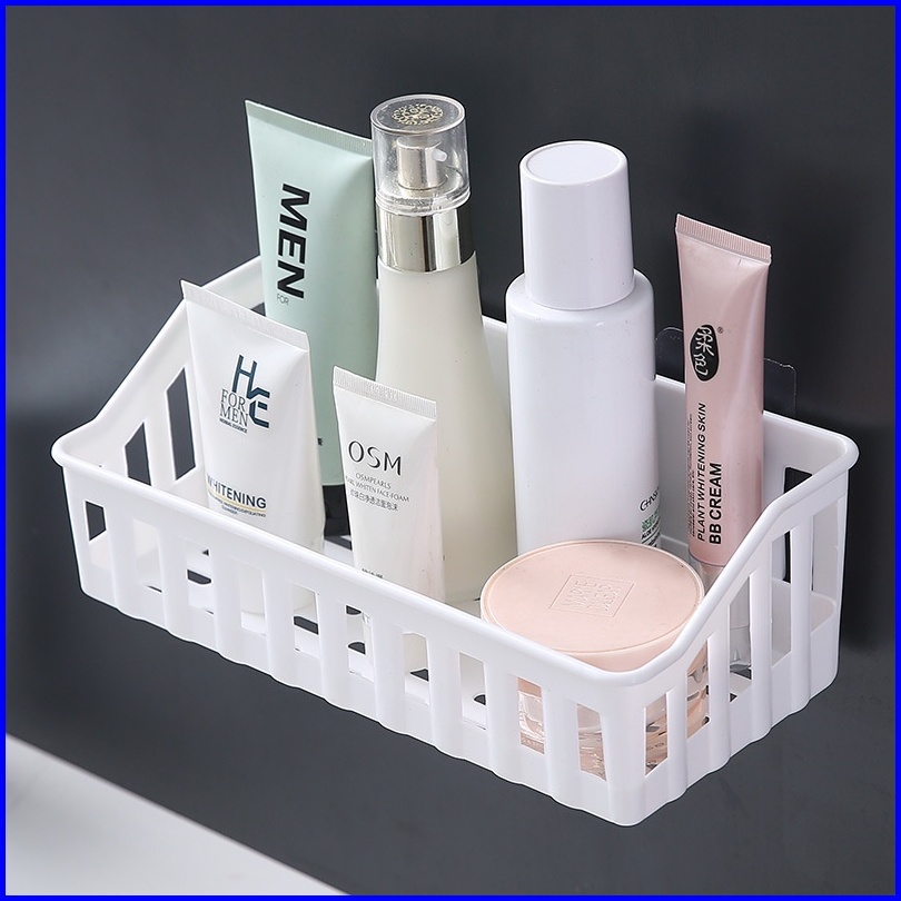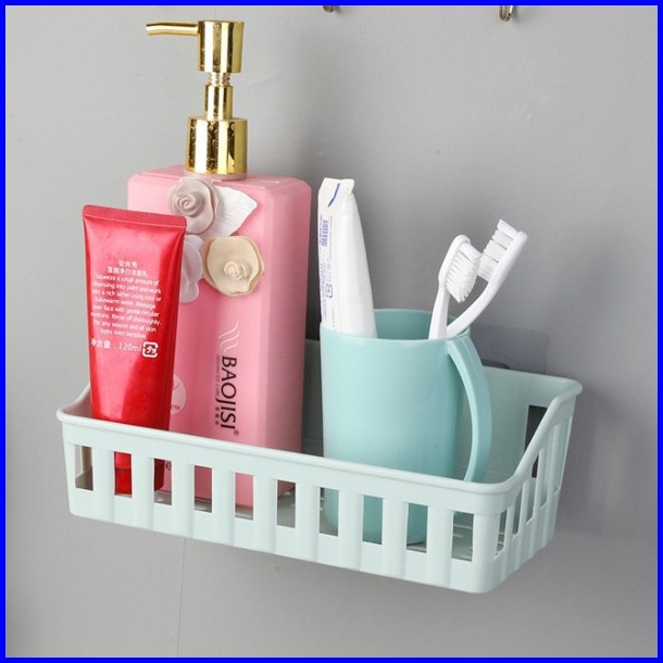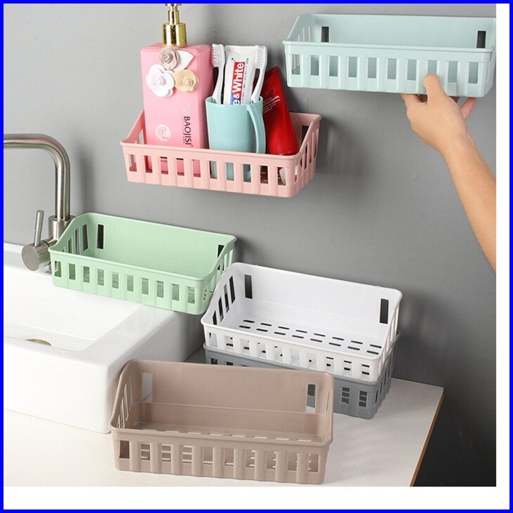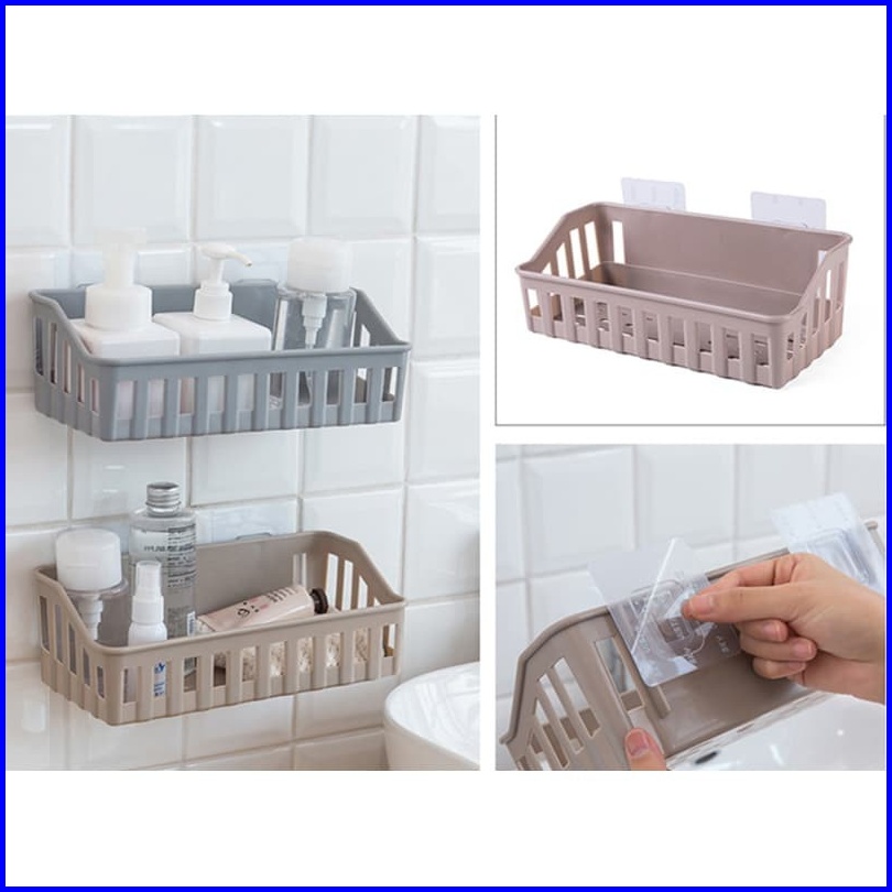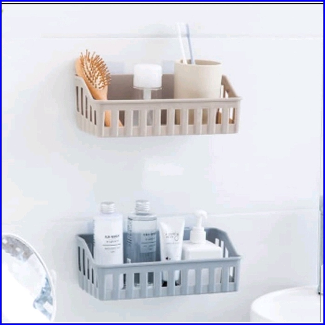 Dejavu Rak Kamar Mandi Tempel Plastik Persegi Rak Dapur Dinding Rak Sabun Mandi Tempat Penyimpanan Kosmetik Hrd322