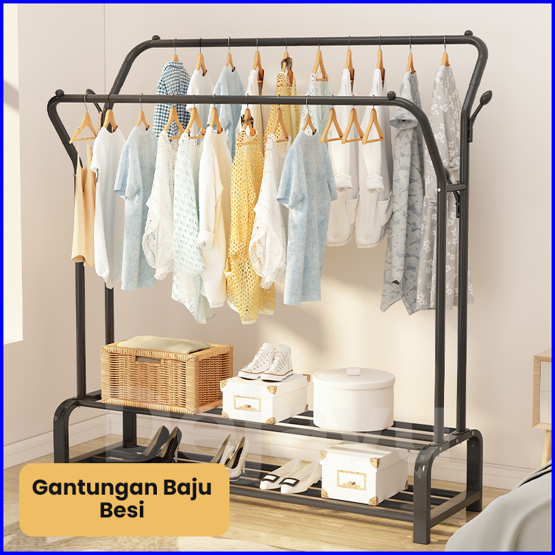 Dejavu Rak Gantungan Baju Besi Stand Hanger Jemuran Pakaian Single Double Tempat Gantung Baju Stainless Mulig Hsh133