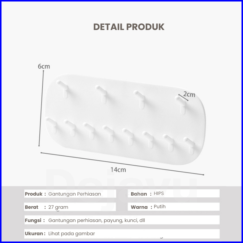 Dejavu Gantungan Perhiasan Dinding Tempel Rak Organizer Gantung Kalung Gelang Anting Aksesoris Meja Kosmetik Kamar Mandi