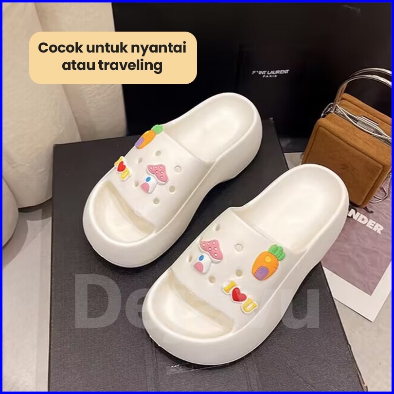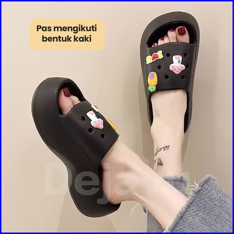 Dejavu Sandal Wedges Jelly Slipper Wanita Elastic Non-slip Sendal Karet Slop Korean Hsn126