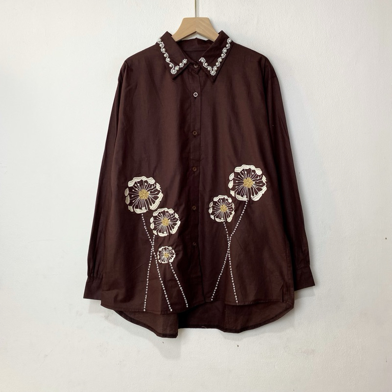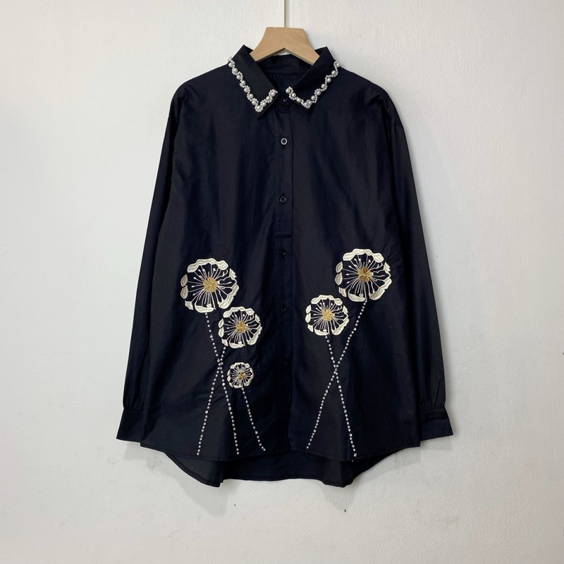 DAISY STUFF Kemeja Bordir Blouse Atasan Wanita Payet Katun Premium