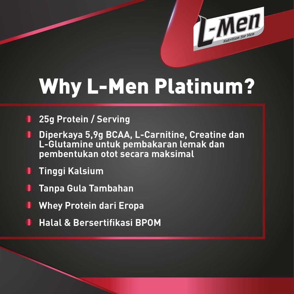 L-Men Platinum Choco Latte 800gram (25 g protein/serving) -1,7 lbs- Suplemen Tinggi Whey Protein Rendah Lemak