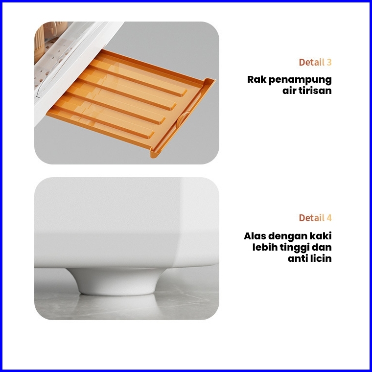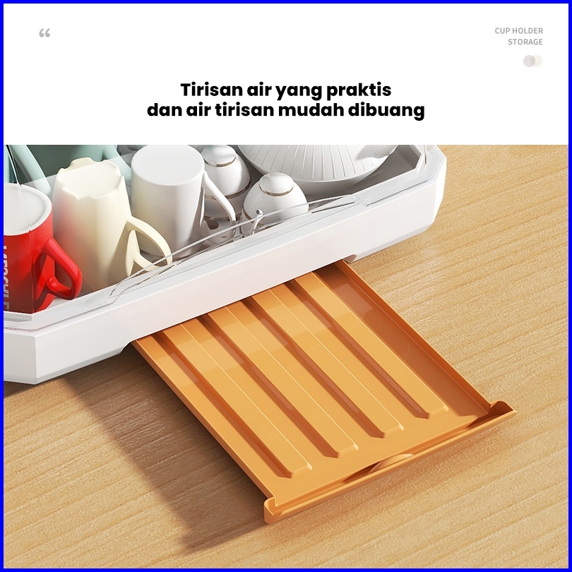 Dejavu Rak Pengering Air Mangkok Rak Piring Plastik Dengan Tutup Rak Piring Garpu Rak Dapur Hlb402
