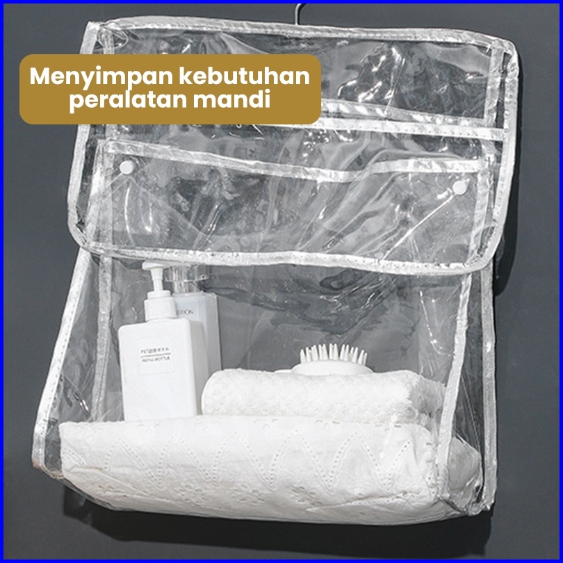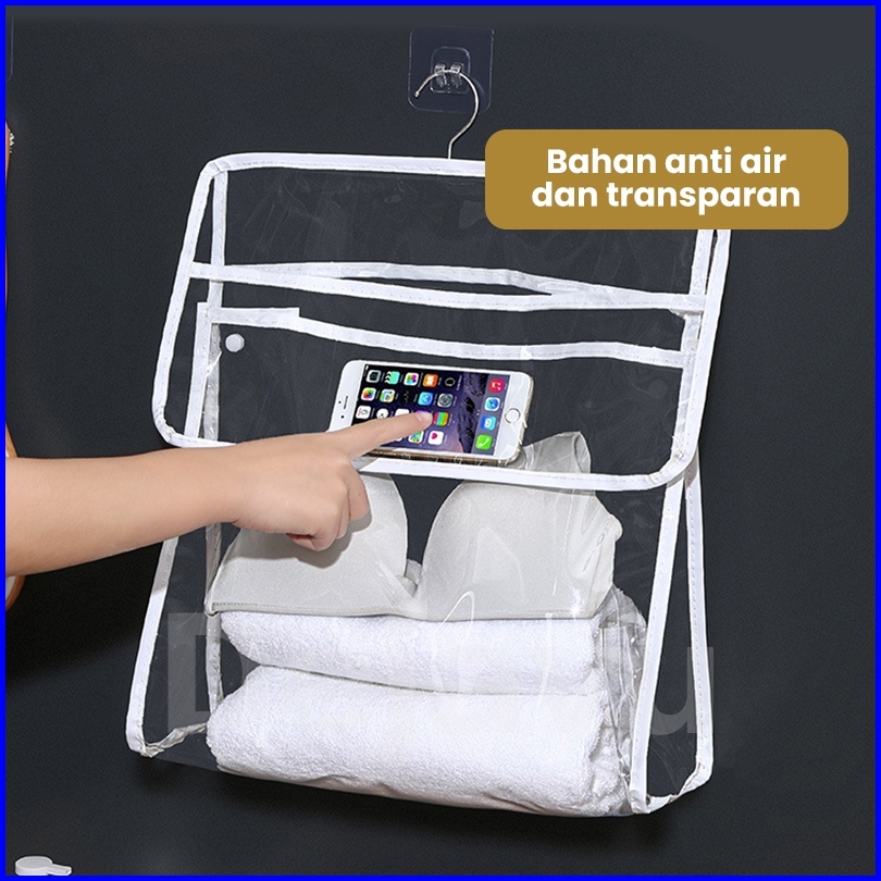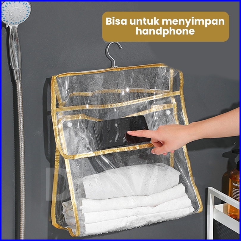 Dejavu Tas Gantung Transparan Kamar Mandi Anti Air Tas Penyimpanan Peralatan Mandi Kotak Hp Waterproof Holder Handphone