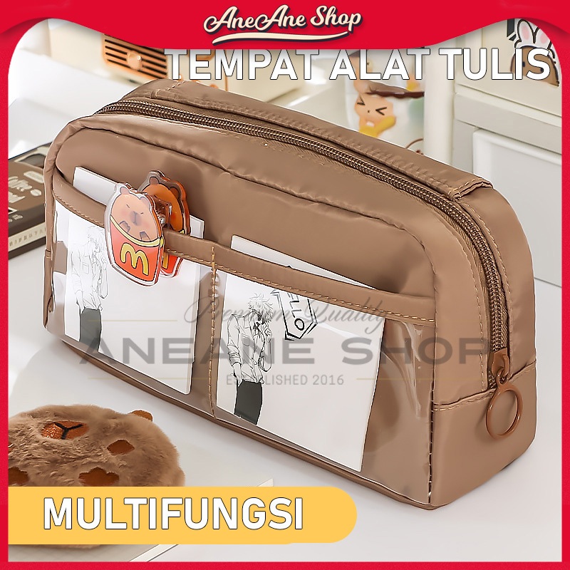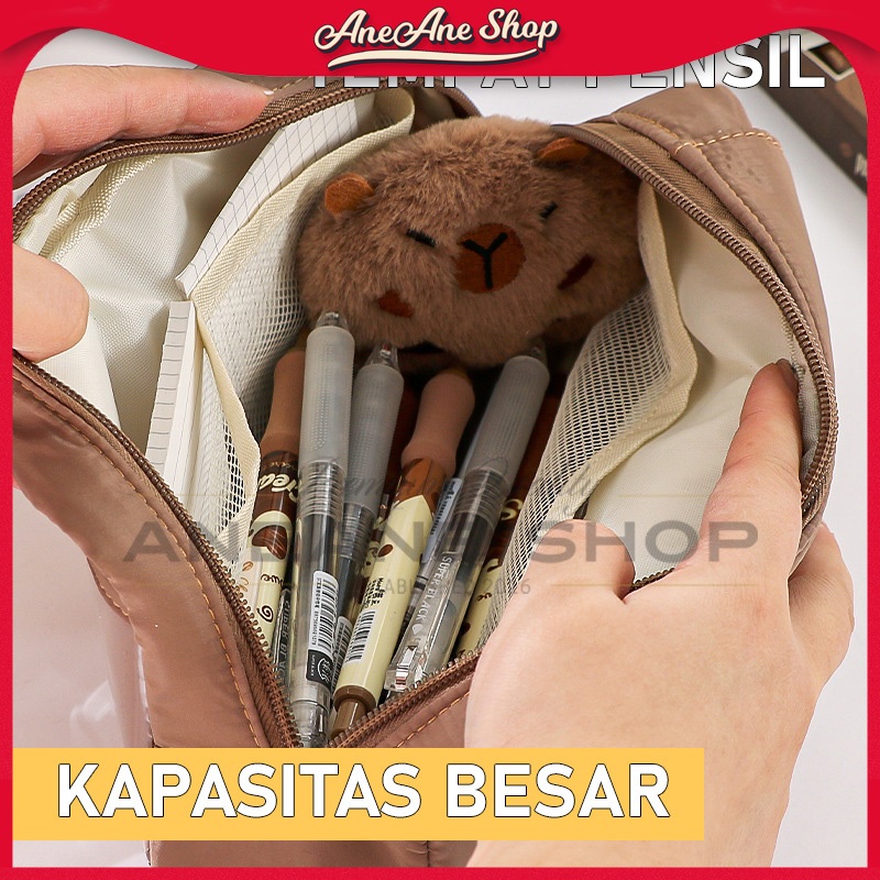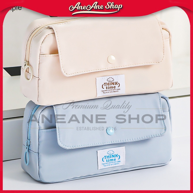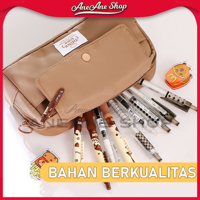 Tempat Pensil Kanvas Kapasitas Besar THINK TIME Organizer Alat Tulis Multifungsi Warna Pastel