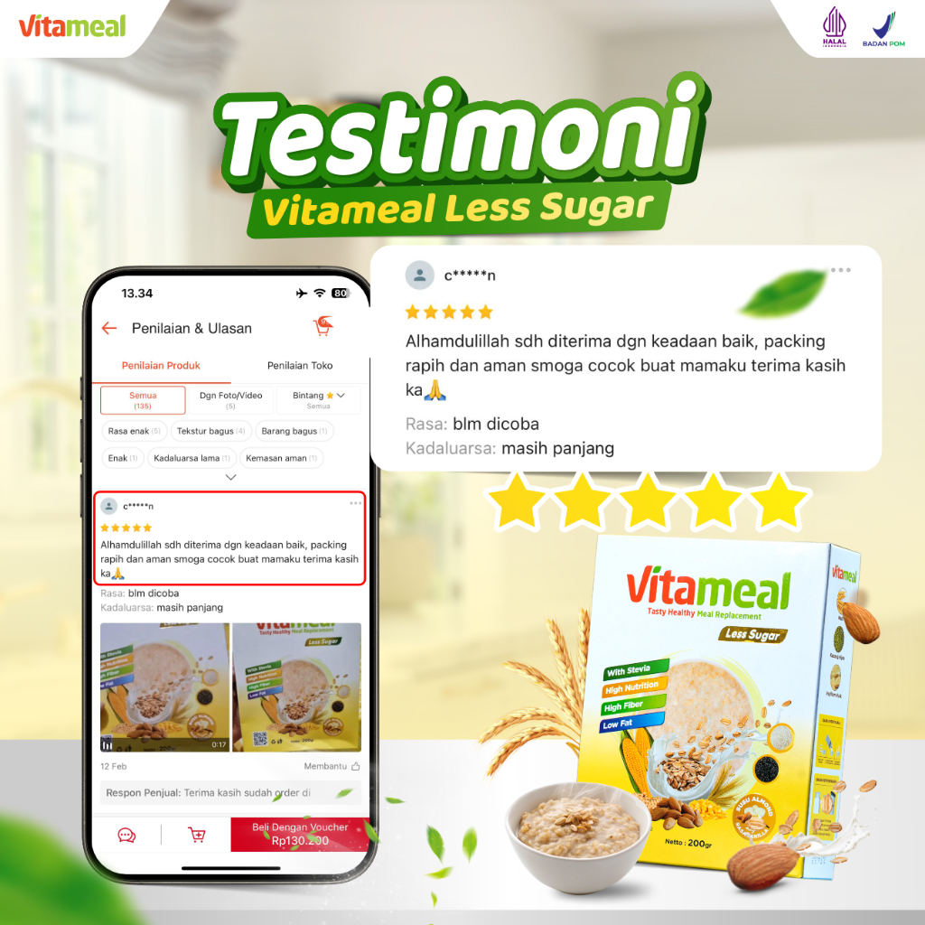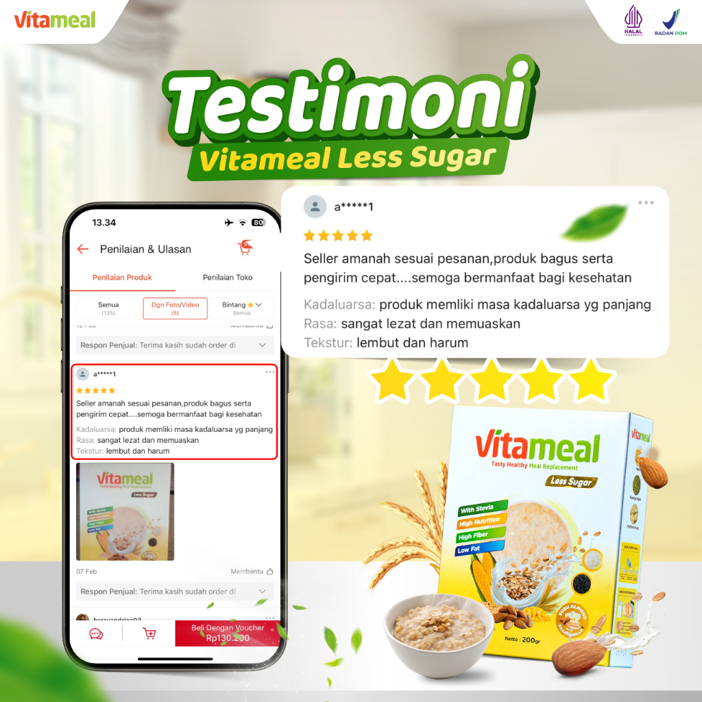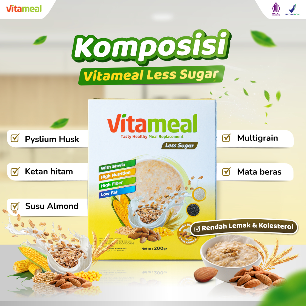 VITAMEAL LESS SUGAR Sereal Multigrain Sehat Rendah Gula Membantu Menurunkan Kolesterol Hipertensi Menyehatkan Jantung Ce