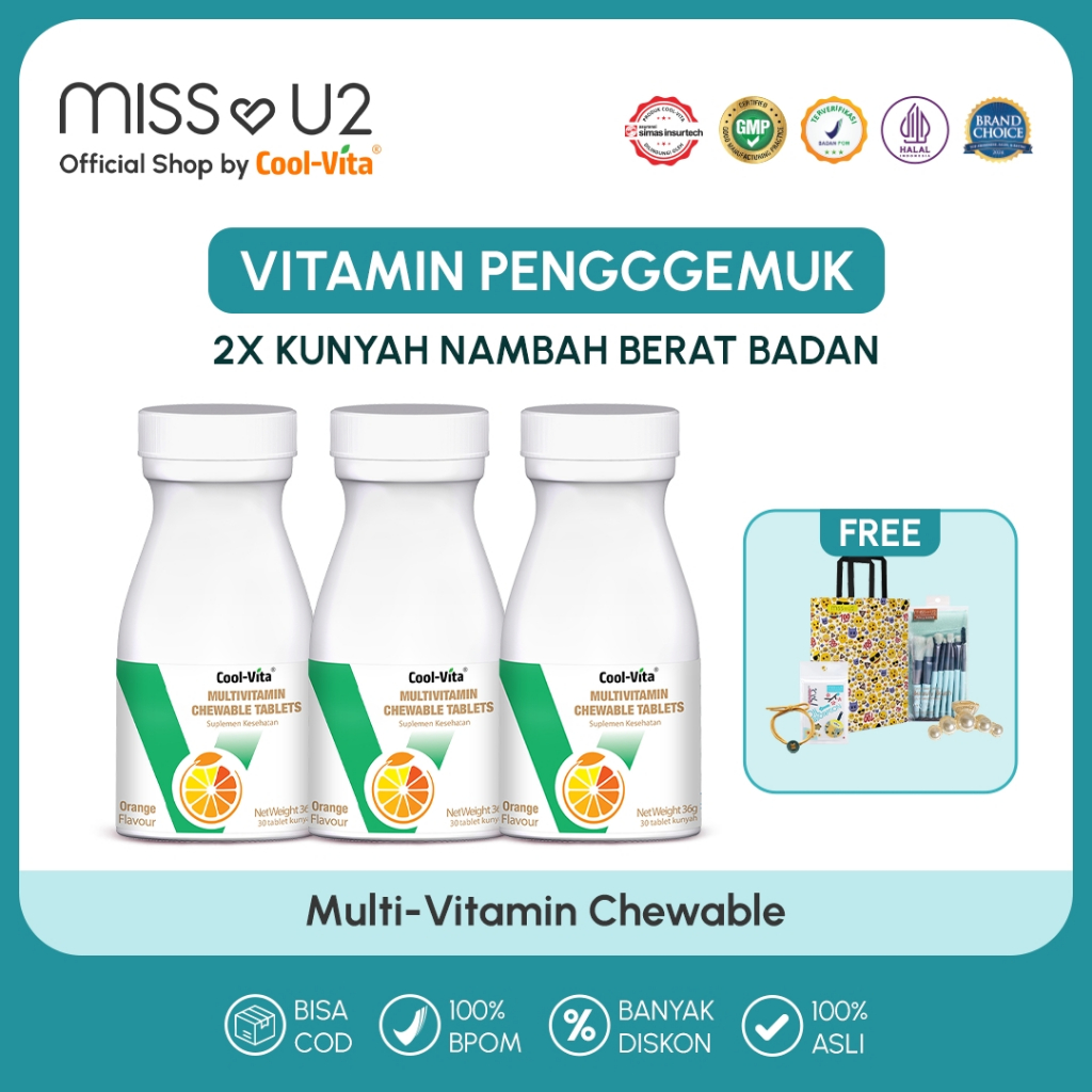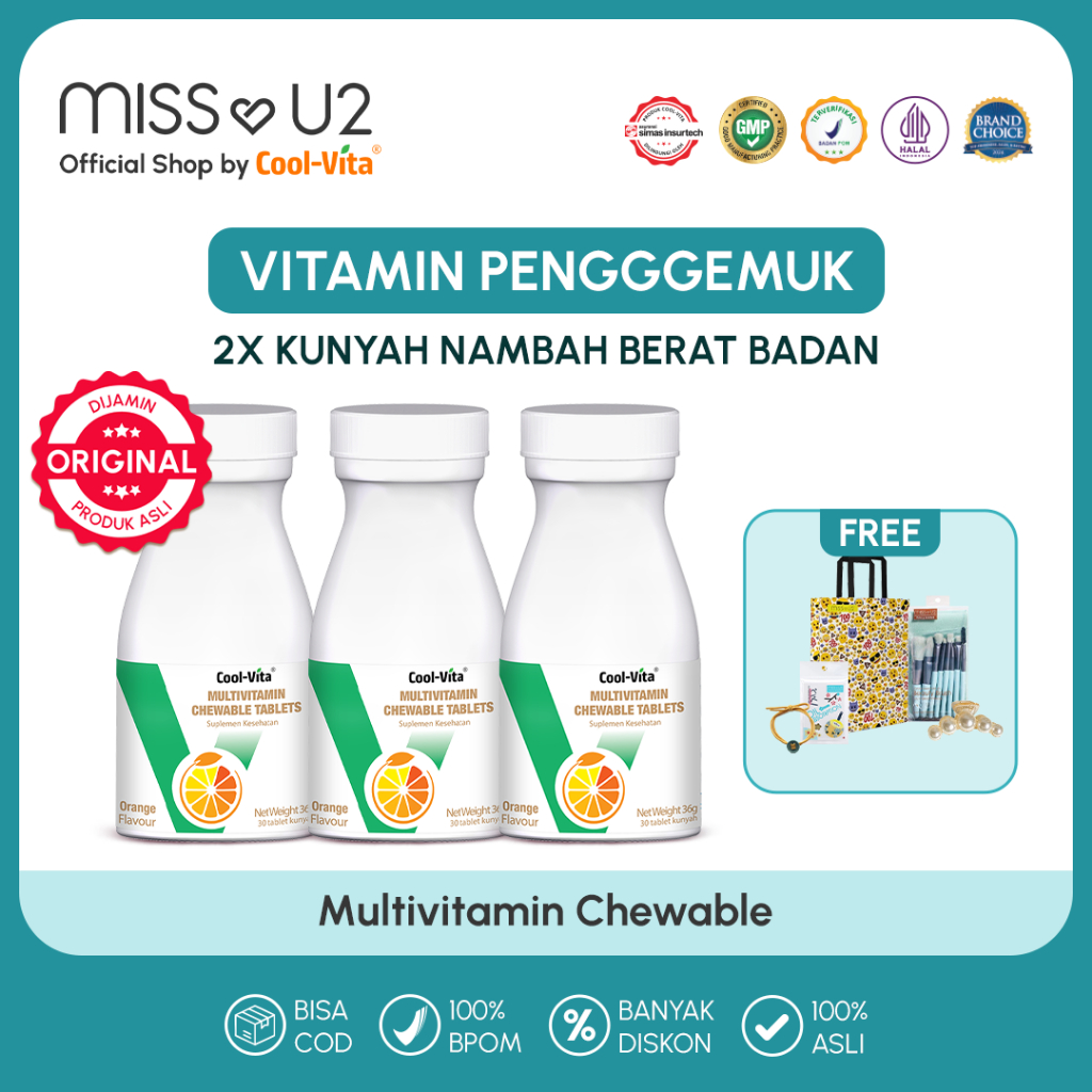 COOLVITA ORIGINAL 3x LEBIH SEHAT IMUN KUAT MULTI VITAMIN Chewable Suplemen Makanan 30 Tablets Orange | Vitamin C | Suple
