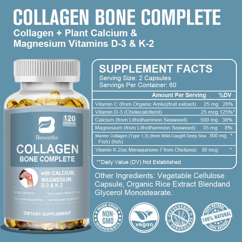BEWORTHS Collagen Bone Complete Capsules Formula with Plant Calcium & Magnesium for Bone Growth Collagen Production Calc