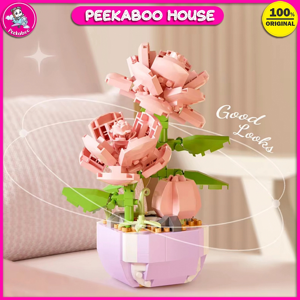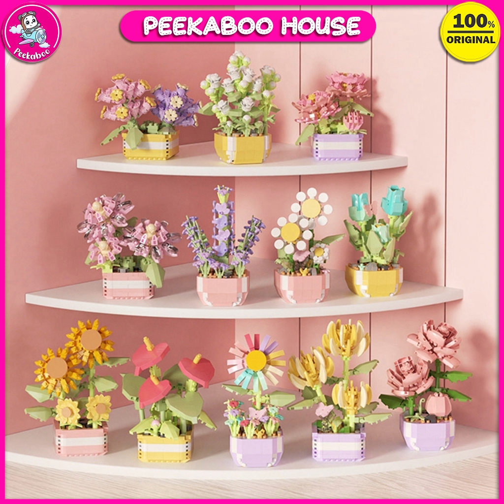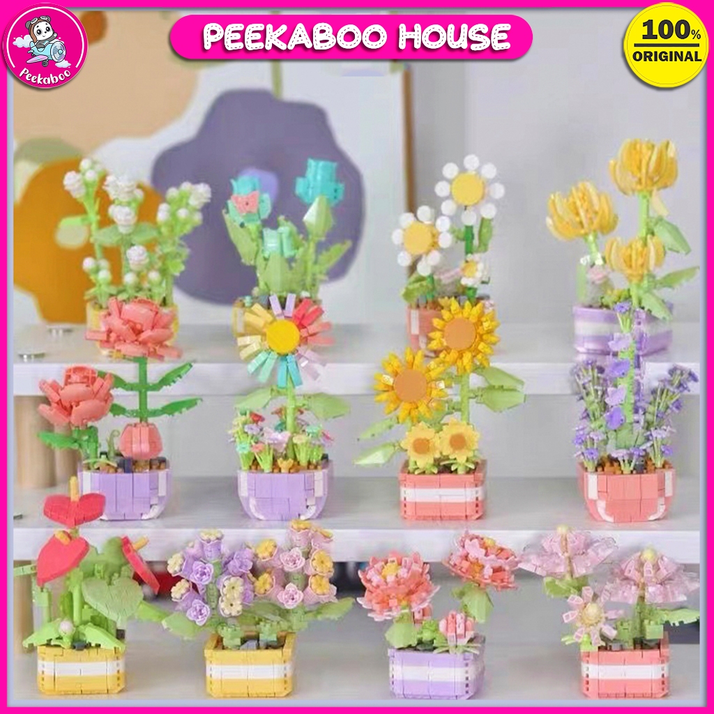 Mainan Balok Susun Nano Block DIY 3D Puzzle Model POTTED FLOWER Bunga Toy Bricks Edukatif Peekaboo