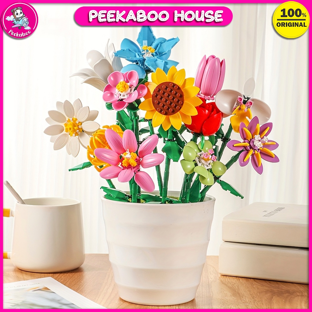 Mainan Balok Susun Nano Block DIY 3D Mini Toys Bricks Single Flower Branch Hadiah Anak Peekaboo