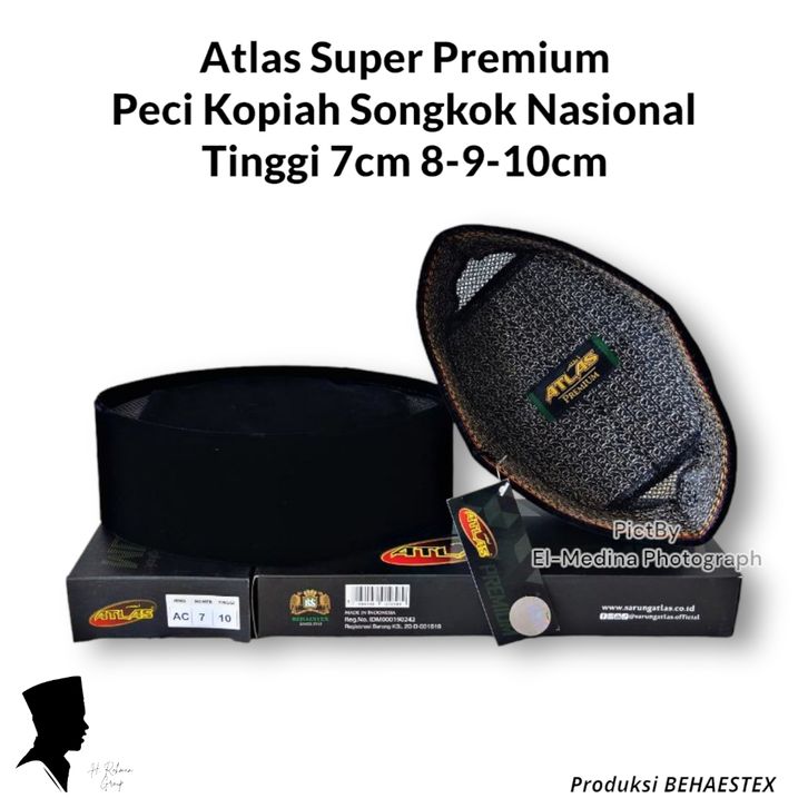 Sarung Atlas Original Peci Kopiah Hitam ATLAS PREMIUM AC Tinggi 7 8 9 10 cm Songkok Nasional Atlas Bludru Super Halus