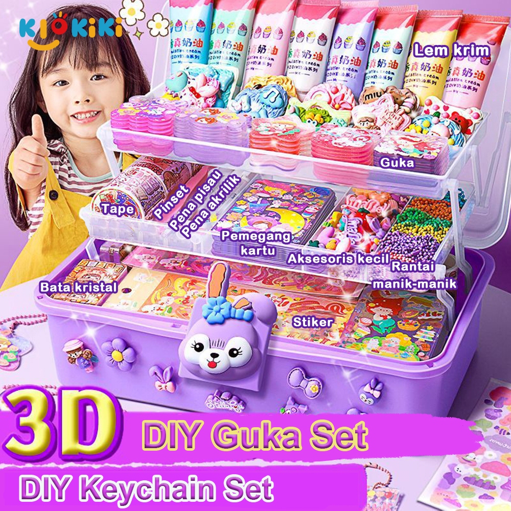 KiKiTOY 1004 PCS DIY Guka Set Gantungan Kunci Akrilik Set Keychain Set DIY Mainan Anak Perempuan