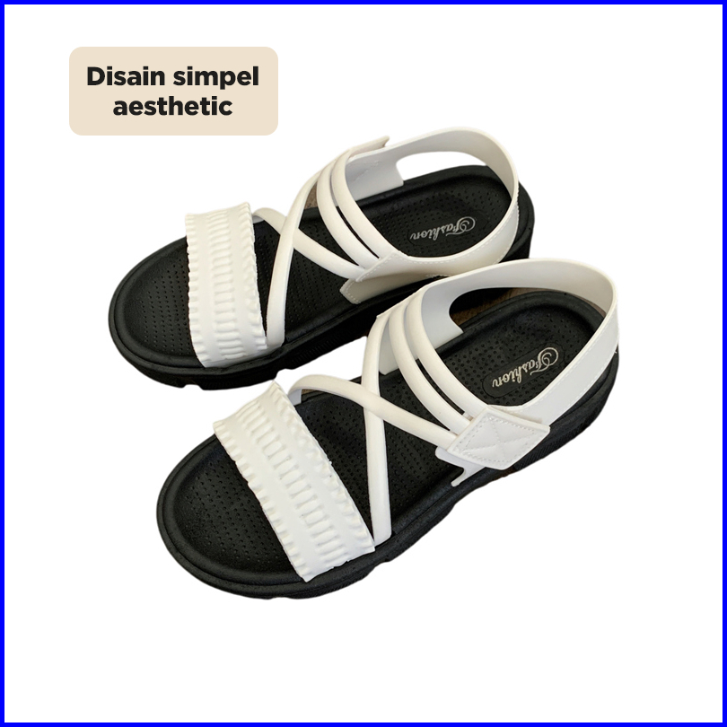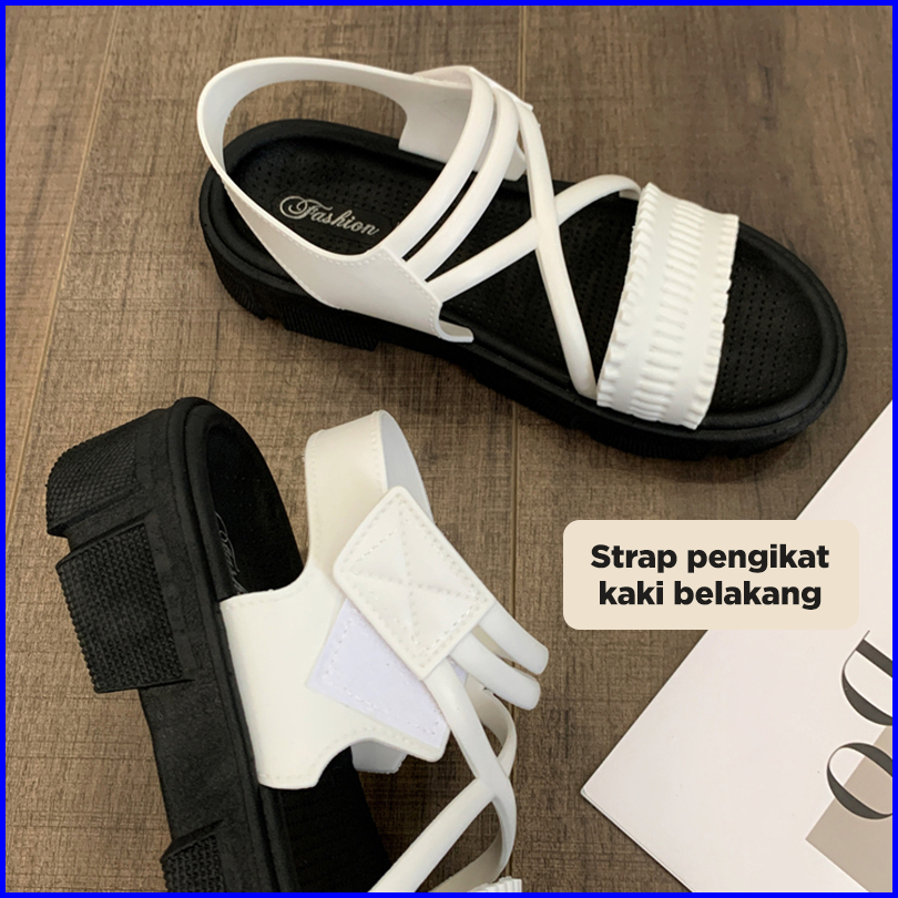 Coolrain Sandal Wanita Model Tali Wedges Wanita Bahan Karet Anti Slip Sandal Slide Kekinian Casual Sandal Wanita Terbaru