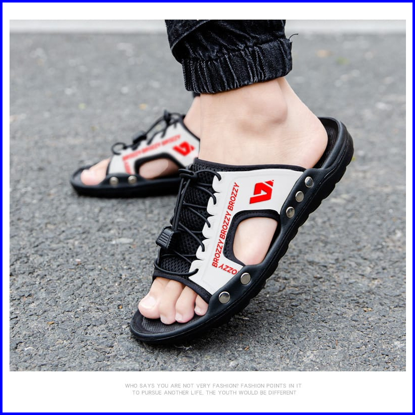 Brozzy For You Sandal Pria B09 Slip On Sandal Gunung Outdoor Pria Kekinian Gaya Korea Kanvas Tahan Air Gratis Ongkir Ong