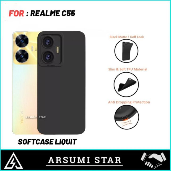 (TERMURAH)PAKET 4 IN 1 CASE REALME C55 NFC / C33 CAMERA SOFTCASE SLIM BLACK MATTE CASE + TG ANTI GORES CERAMIC A
