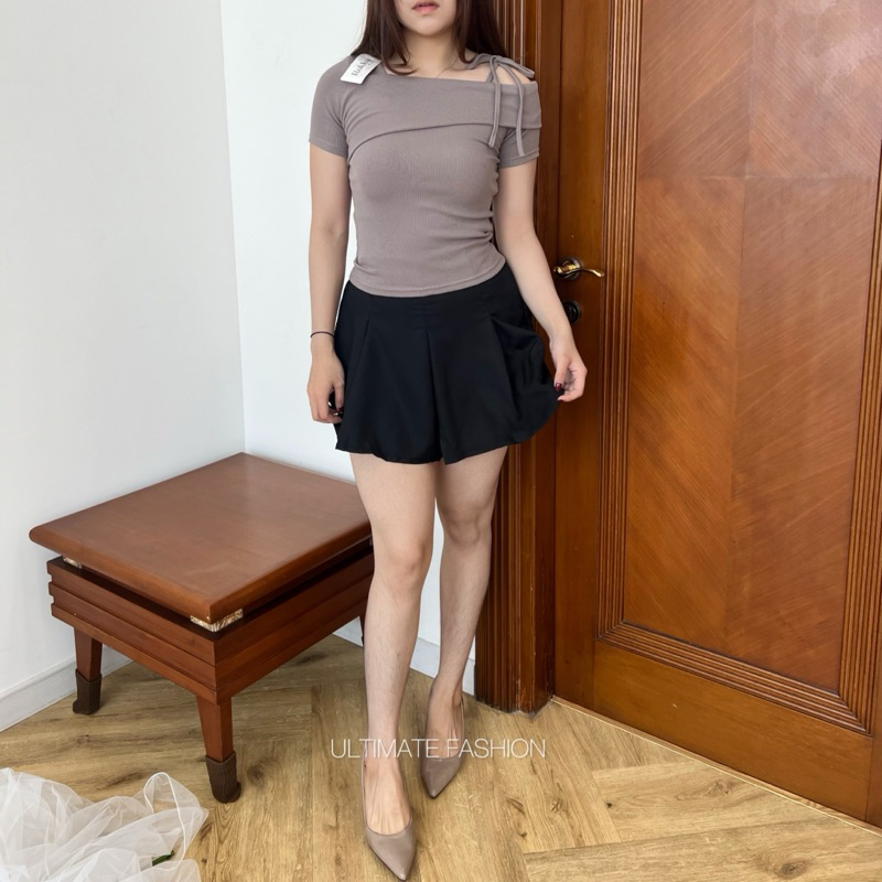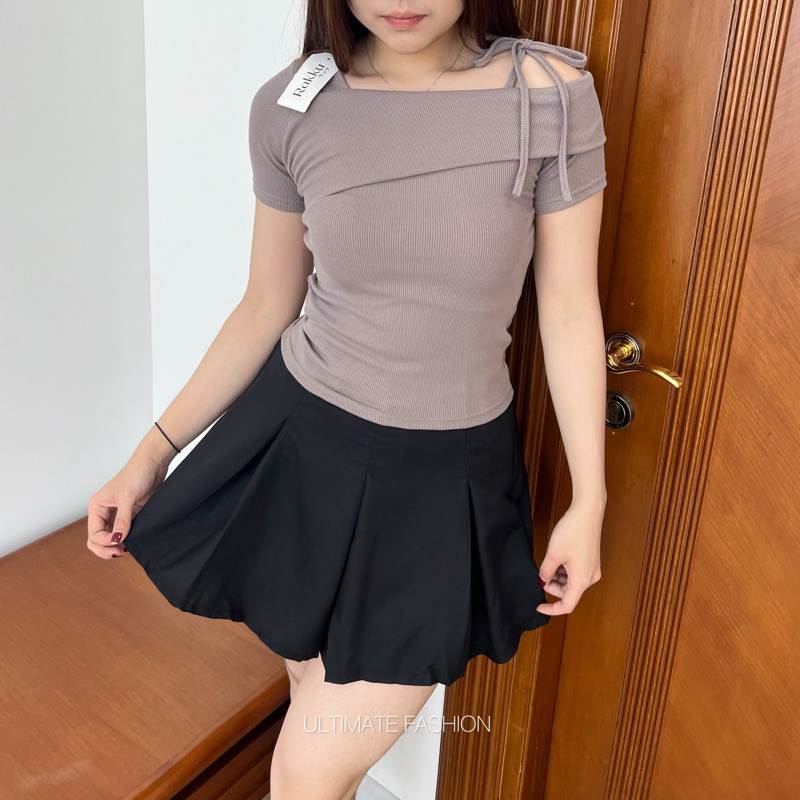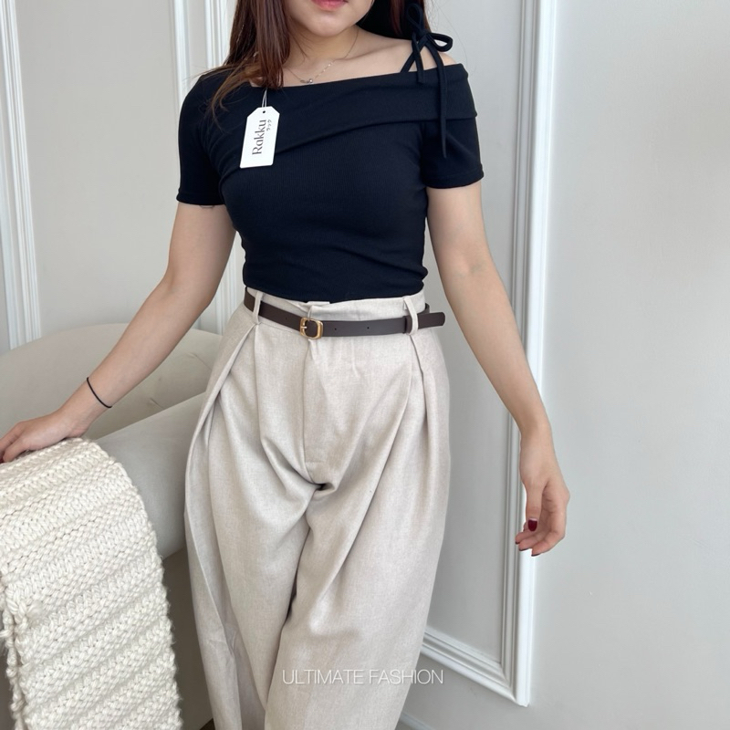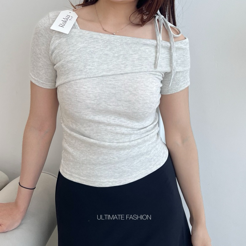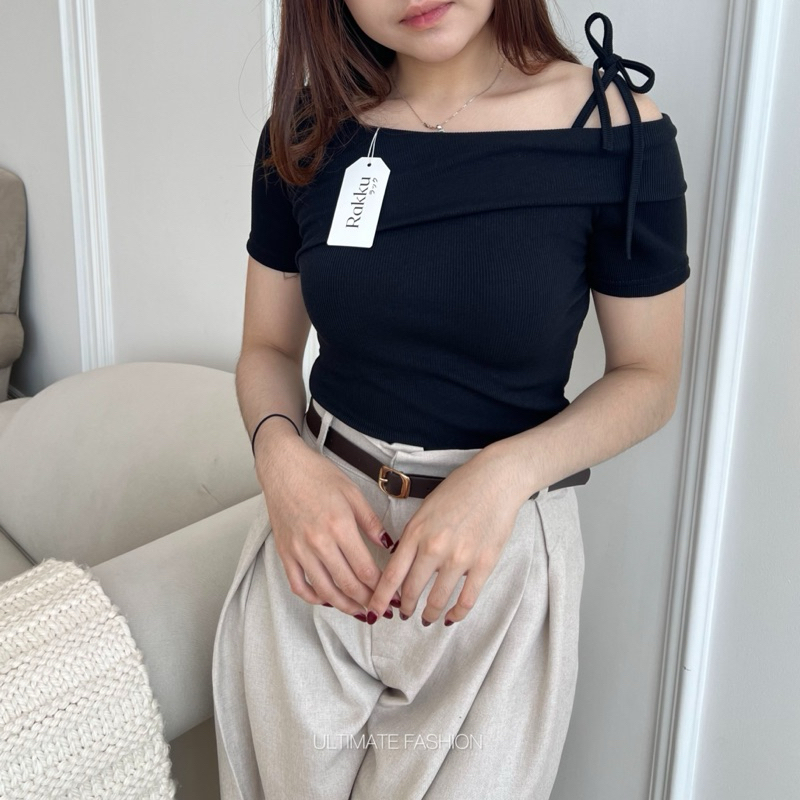 Rakku Yolla Sabrina Knit Top 218 – Atasan Baju Wanita Lengan Pendek Pita – Basic Short Sleeve Korean