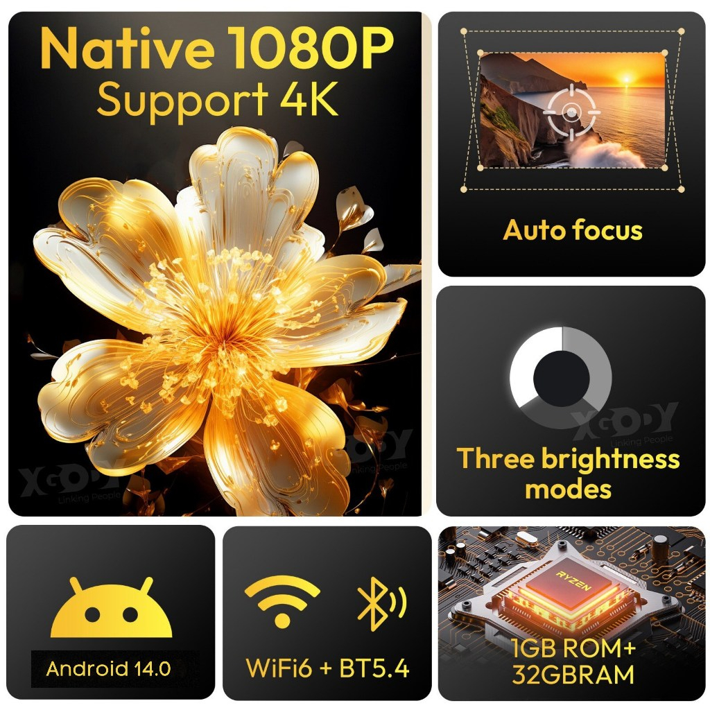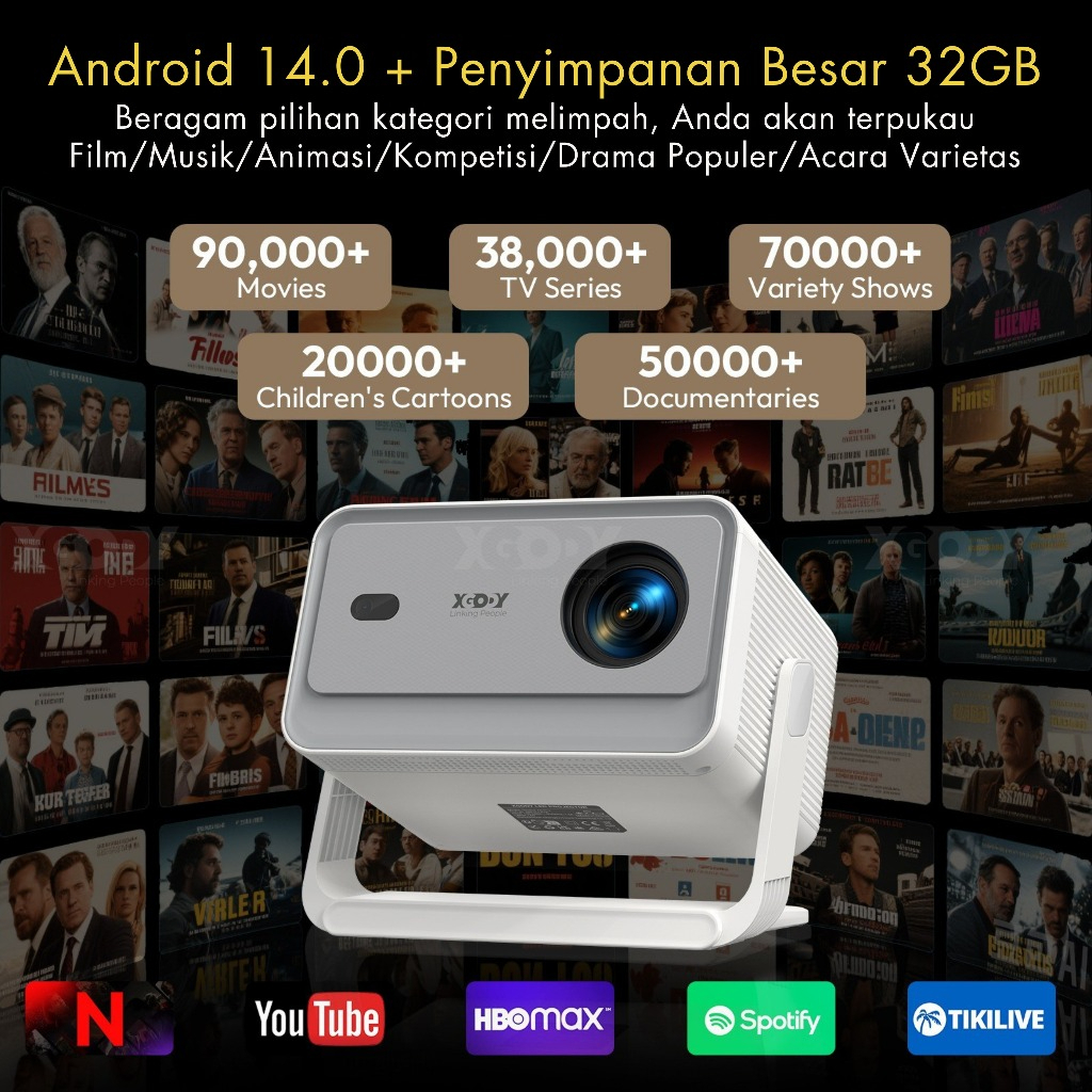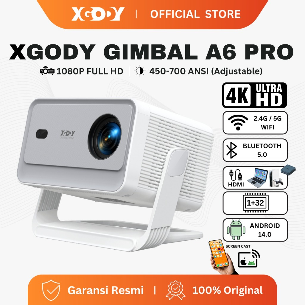 SYF - XGODY Gimbal A6 Pro Smart Proyektor LCD -Android14 - FHD 1080P - AUTO Focuse-Eye Protection-700 ANSI