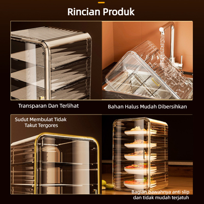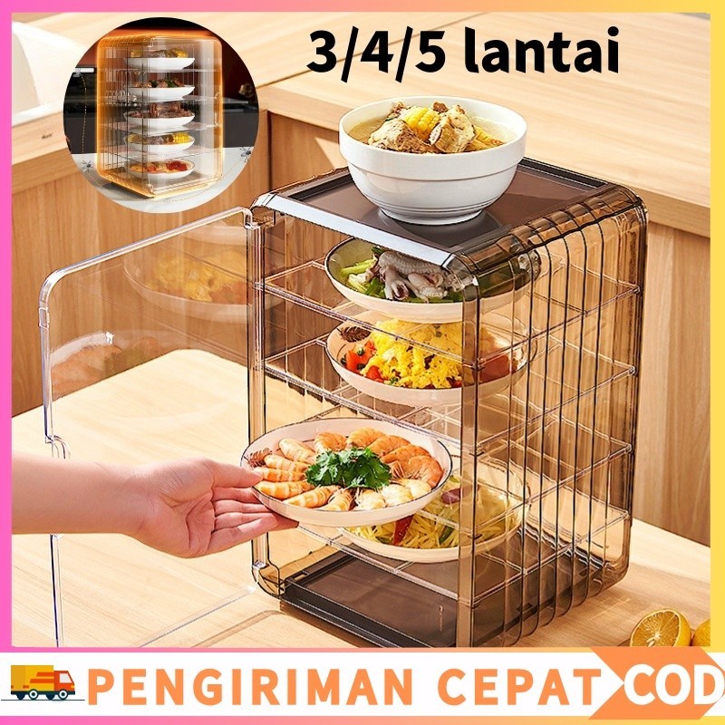 [] 3/4/5 lantai / Tudung Saji Penyimpanan Makanan Rak Makanan Bertingkat Akrilik Serbaguna Multifungsi 5 Susun Tetap Han