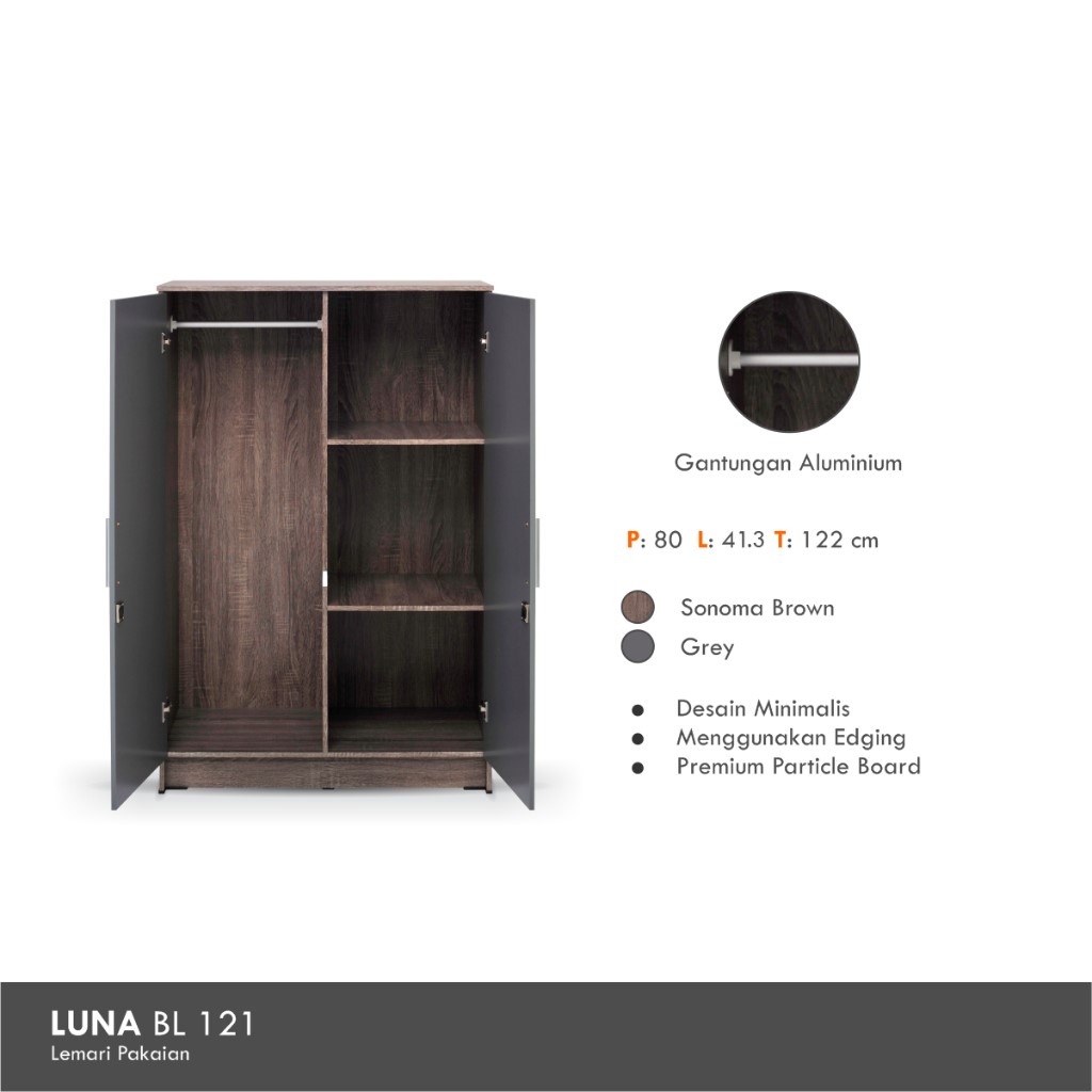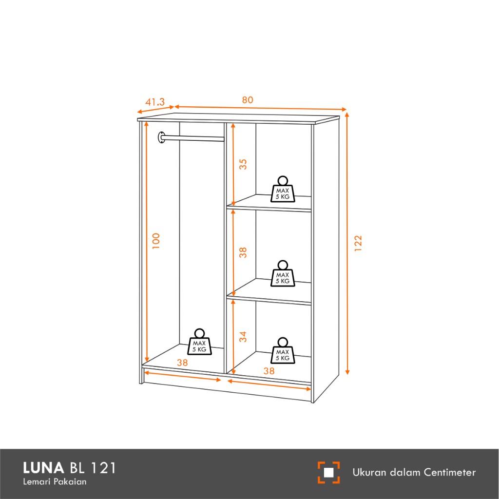 CUBIC LUNA BL 121 LEMARI PAKAIAN 2 PINTU ALMARI KECIL MINIMALIS MODERN BAJU GANTUNG KAYU JATI KUAT DAN KOKOH BERKUALITAS