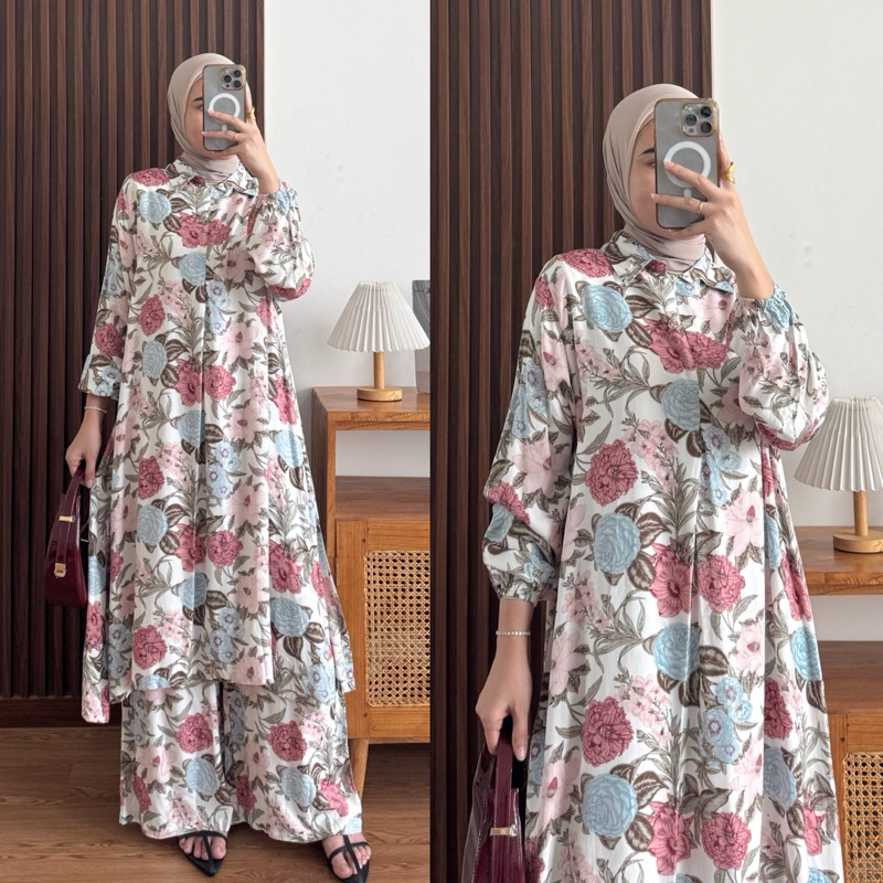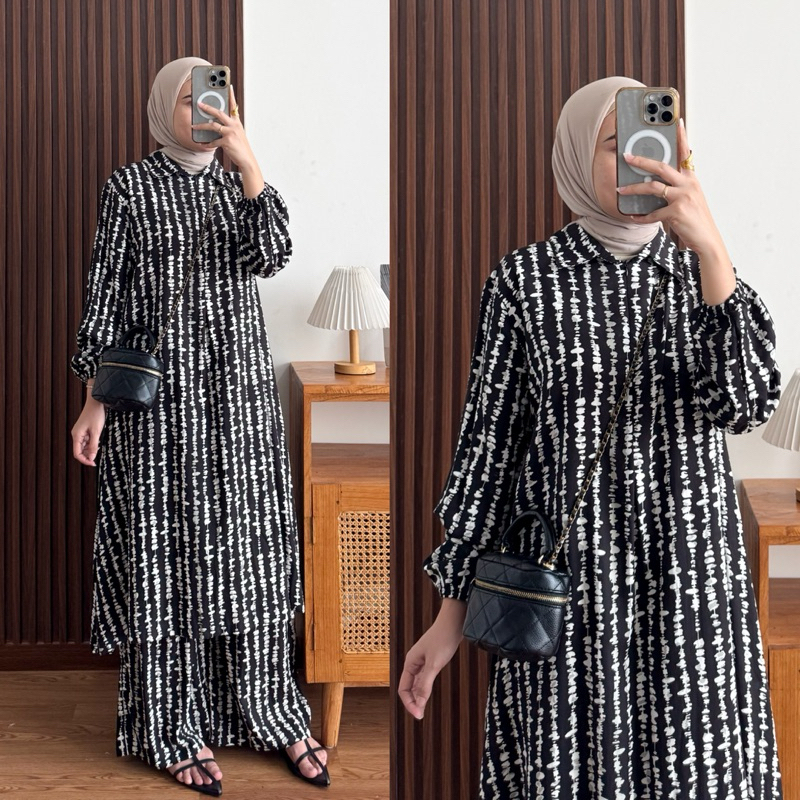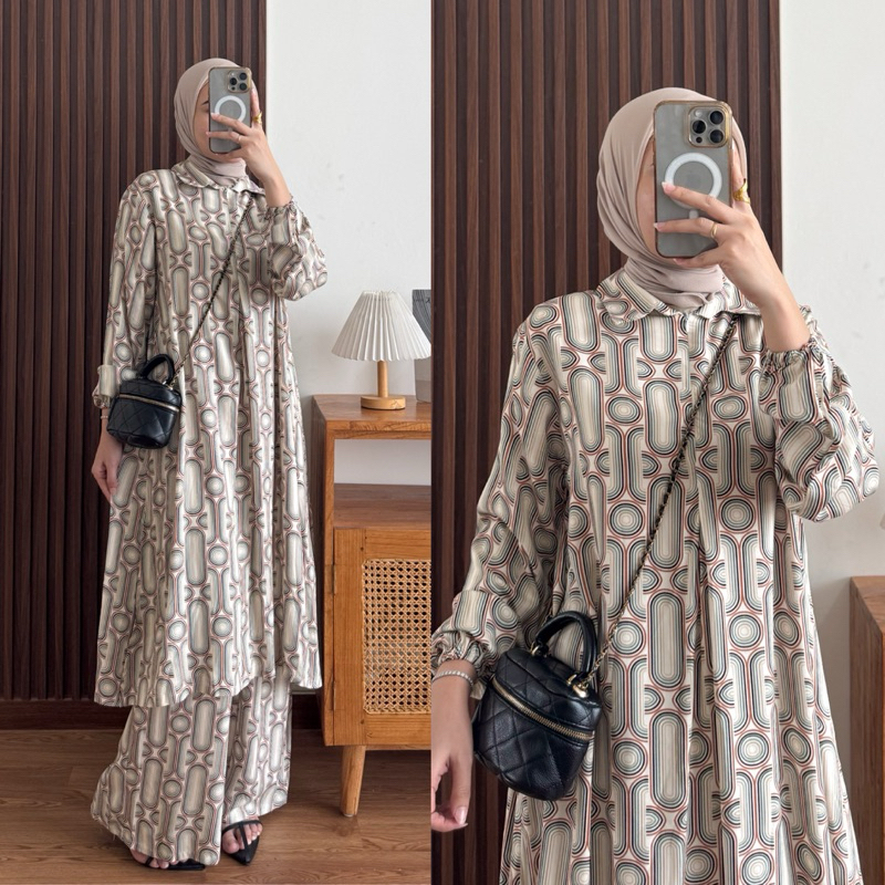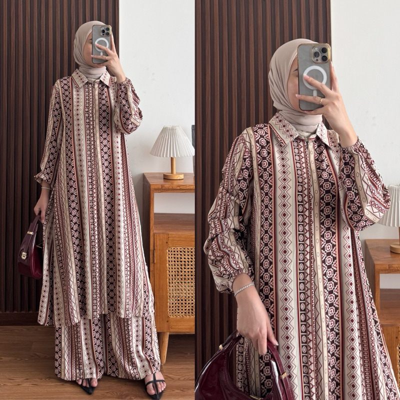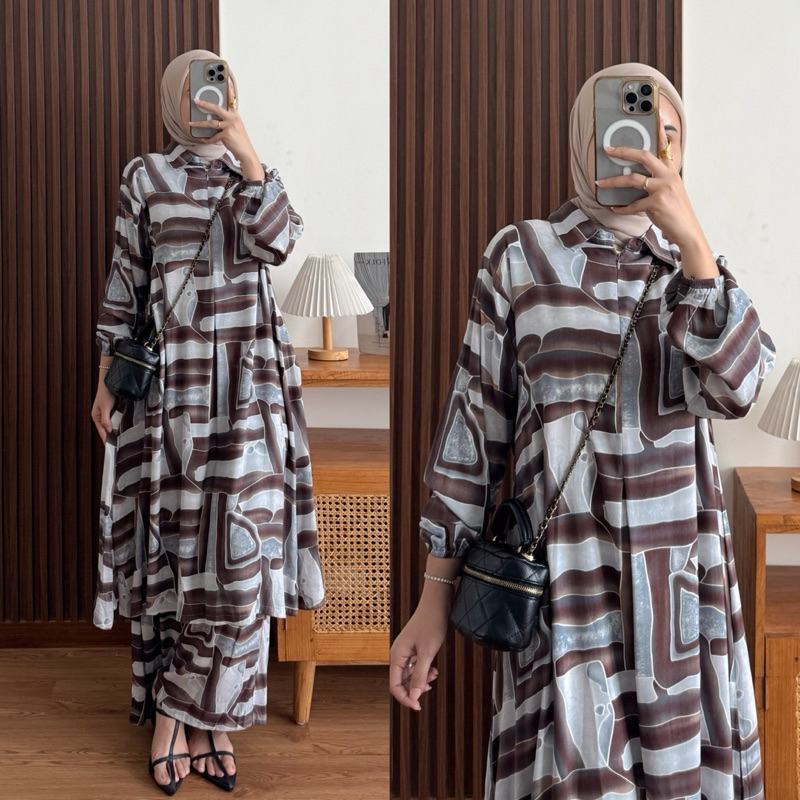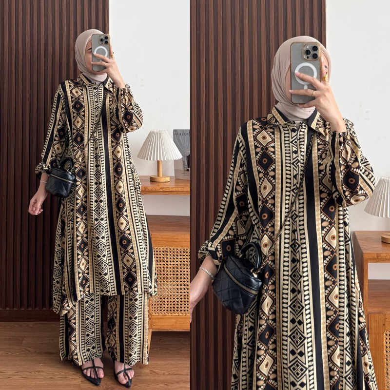 Raya Set Tunik Rayon Motif Ziper Depan
