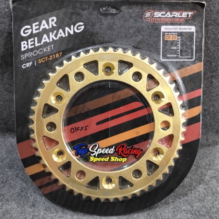 GEAR BELAKANG 428 SCARLET TERSEDIA UKURAN 48 / 49 / 51 / 52 / 53 / 54 / 55 / 56 BUAT HONDA CRF 150