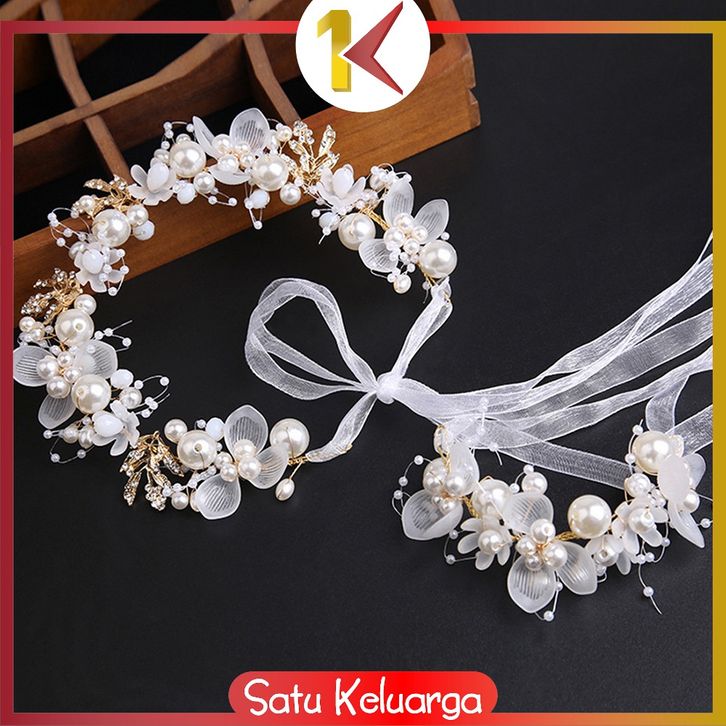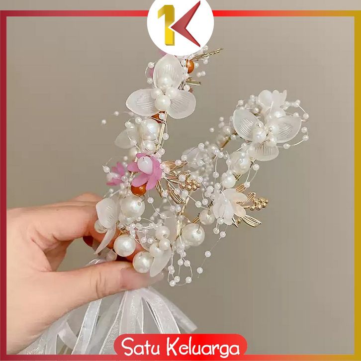 SK-C1229 Bando Mahkota Anak Mutiara Bunga Hiasan Hijab Aksesories Rambut / Headpiece Bando Mutiara Bunga Anak Princess
